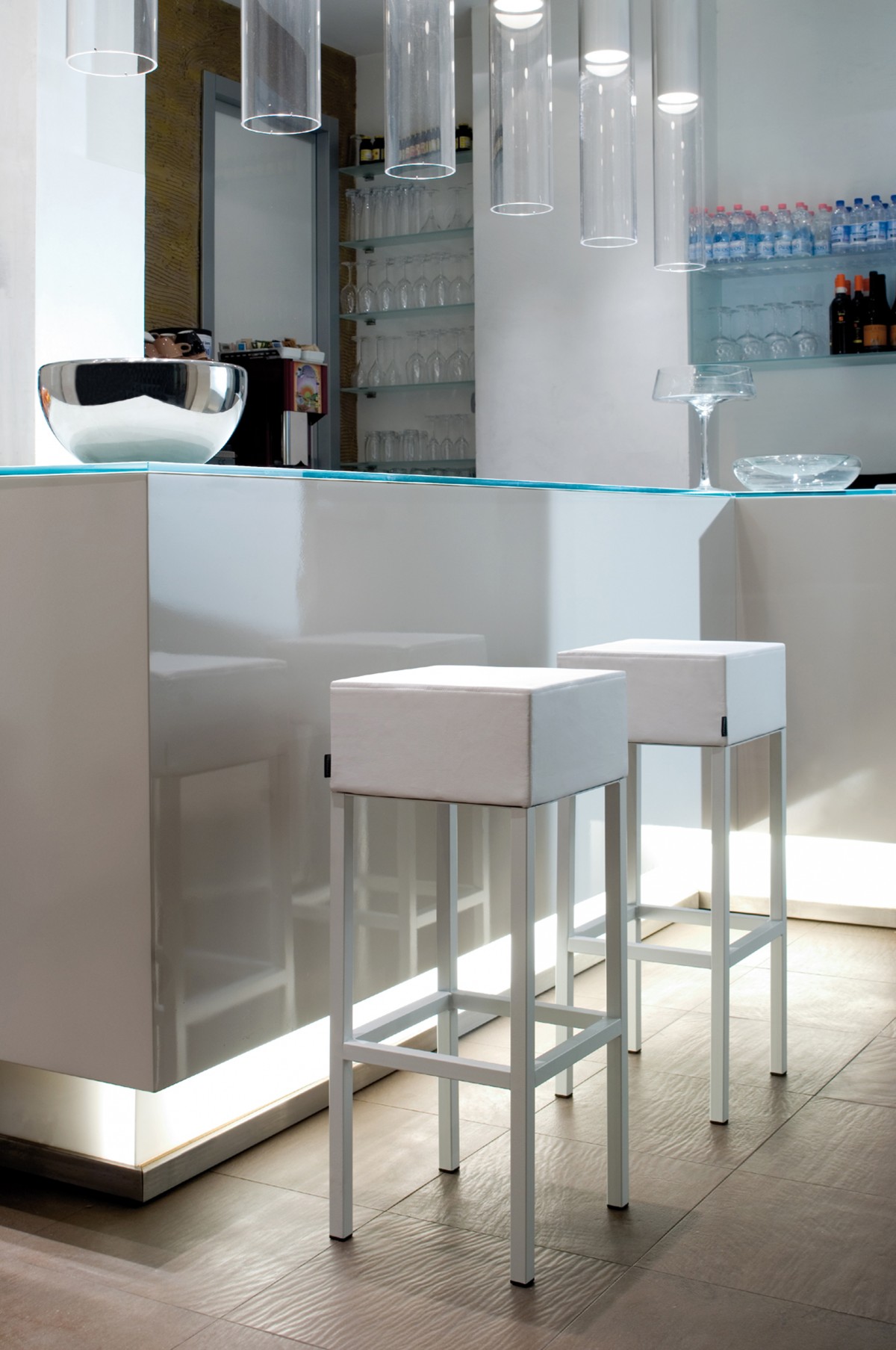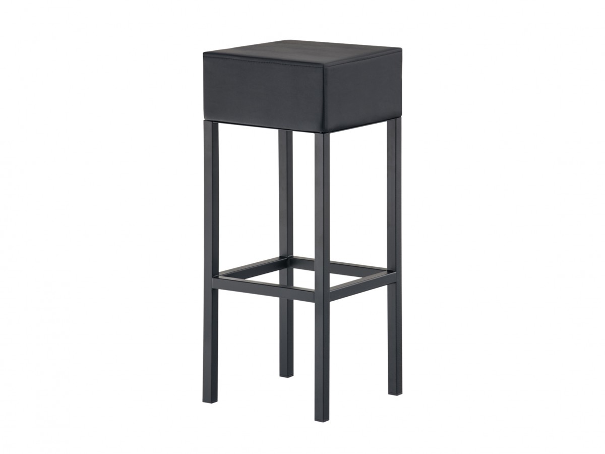 - Cube bar stool full colour version, black or white powder coated 25x25mm square steel tube frame and black synthetic upholstery.