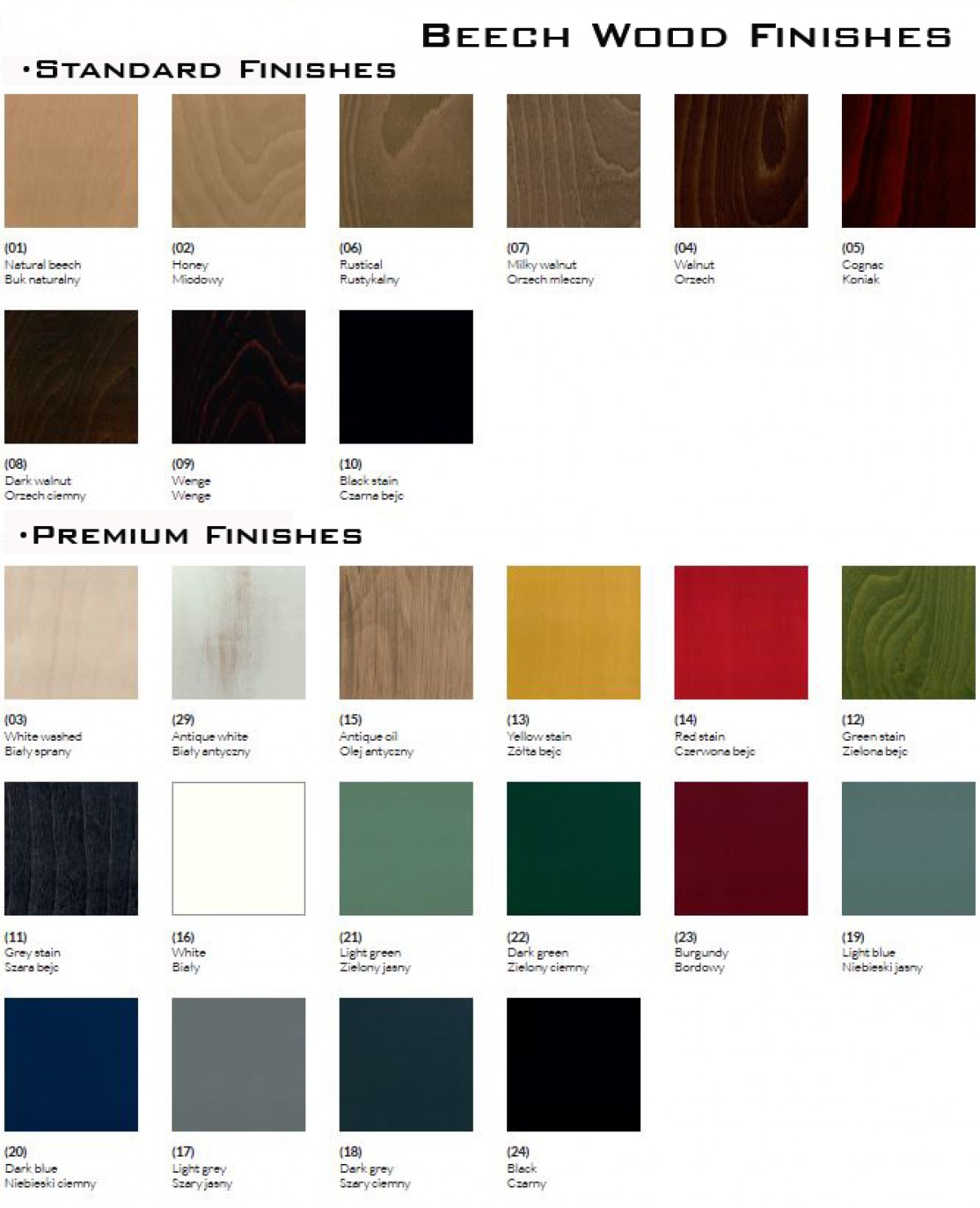 • Wide range of wood colors and upholstery variants.