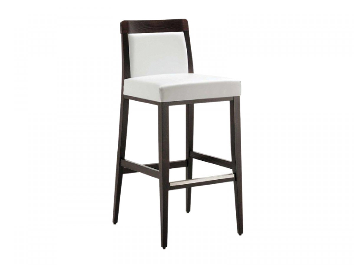 - Modern barstool with beech wood frame, available in different colors.