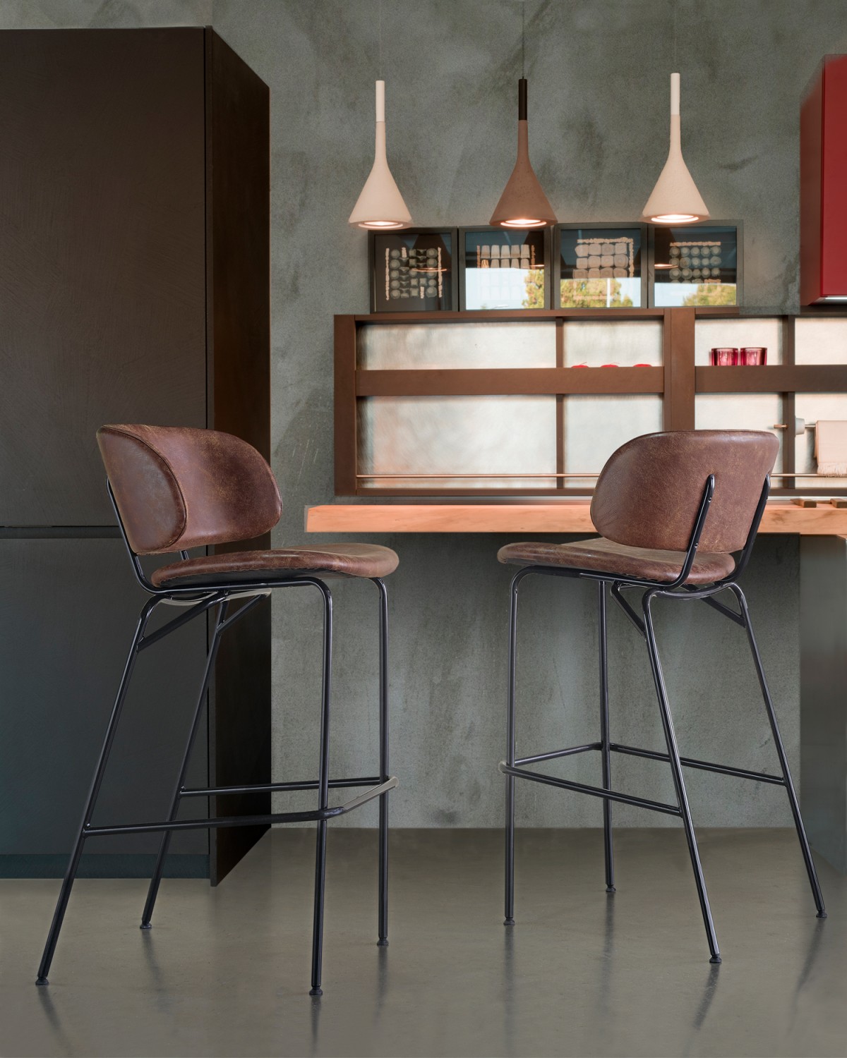 • July bar stool can be personalized by choosing the upholstery materials and the steel frame color finish: RAL color or chrome.