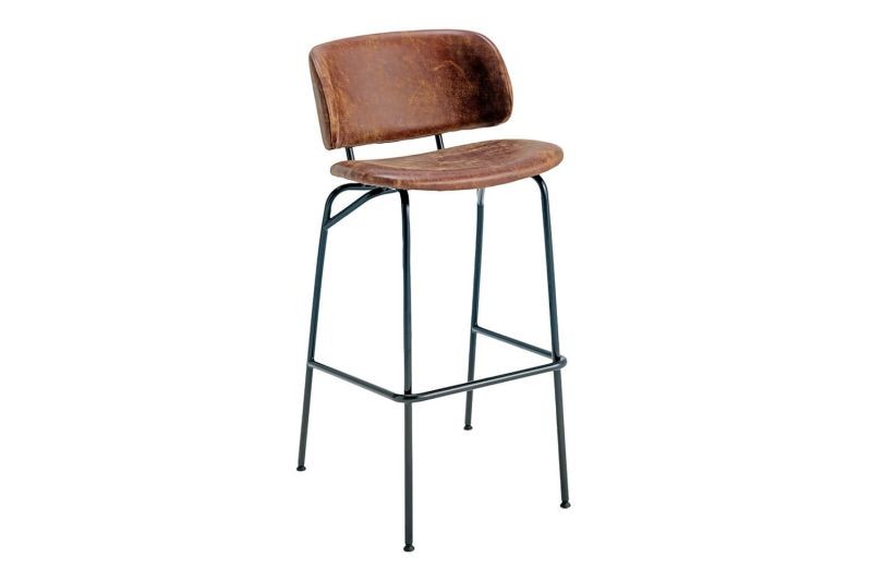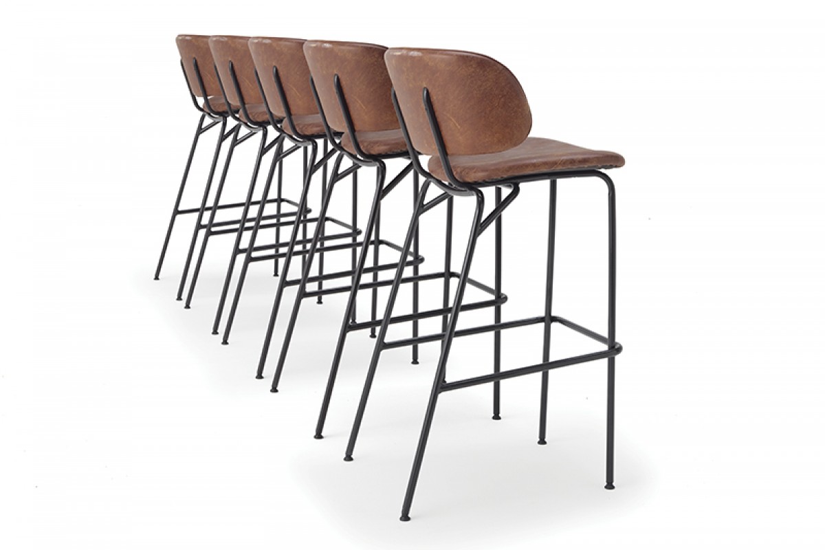 • Steel tube frame bar stool with a curved back for extra comfort.