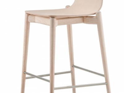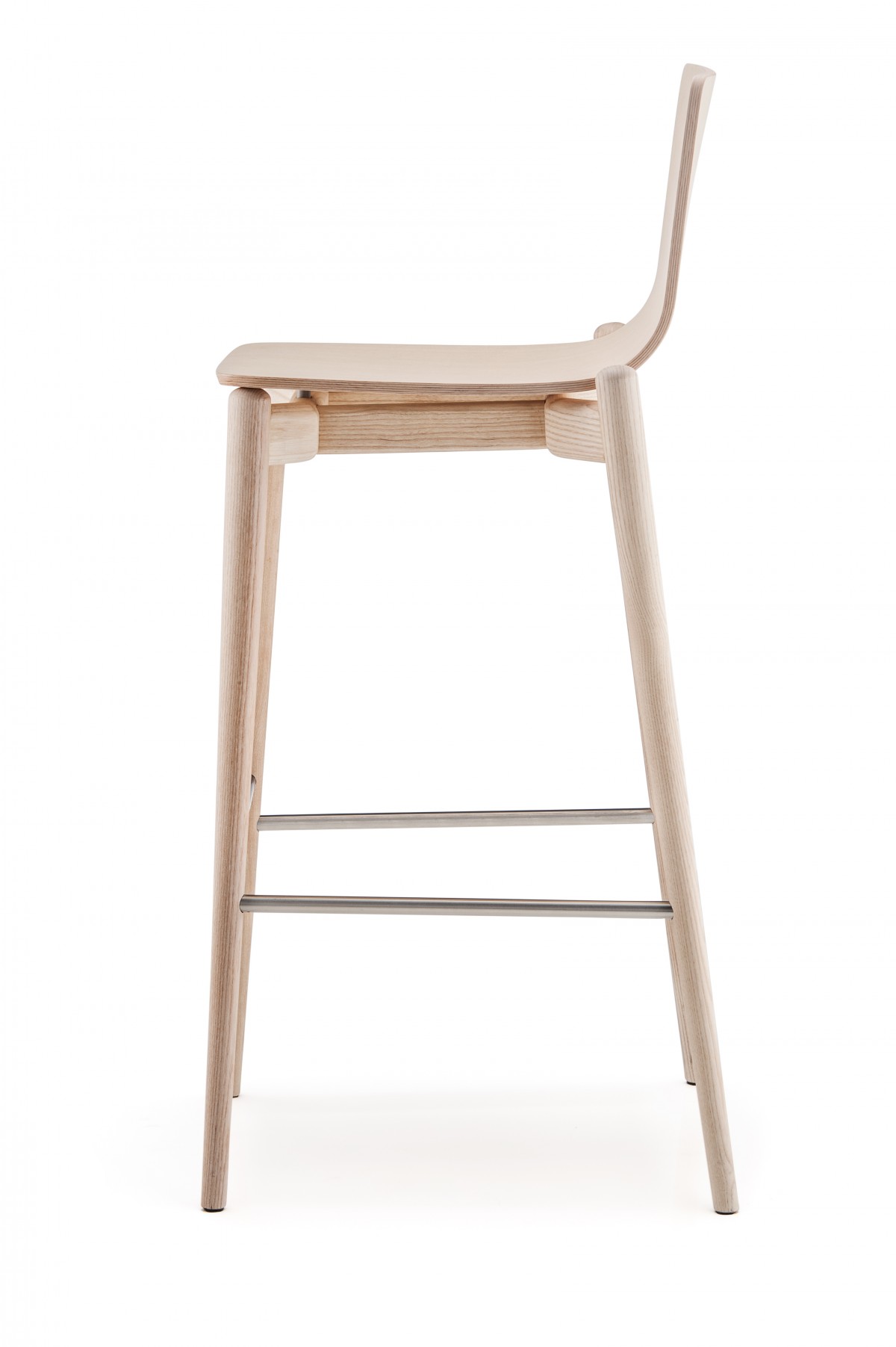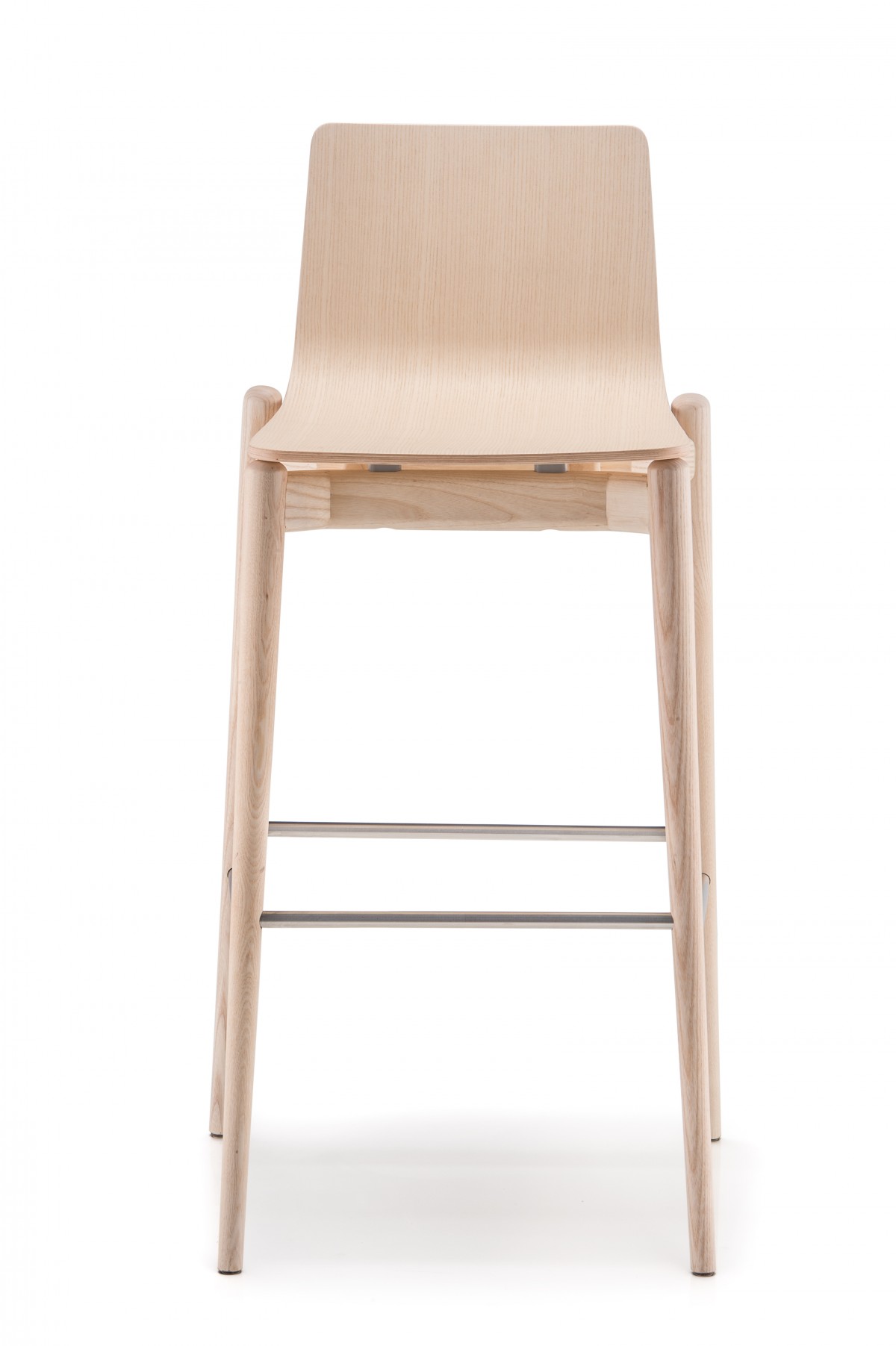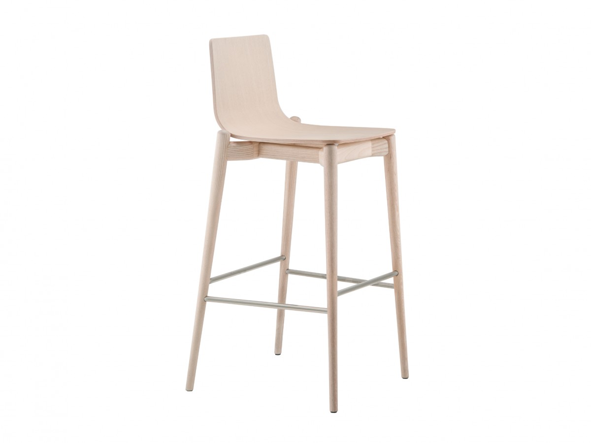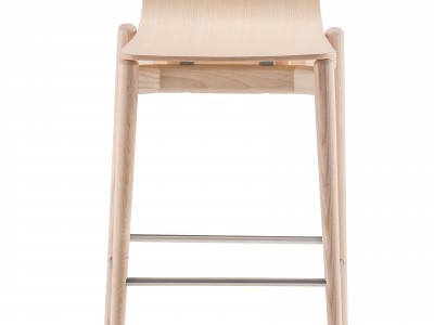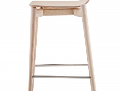 - Barstool with ash veneered plywood shell, solid ash wood frame and stainless steel footrest. Seat height 750 mm.