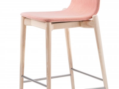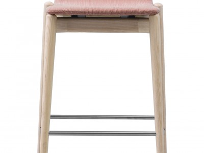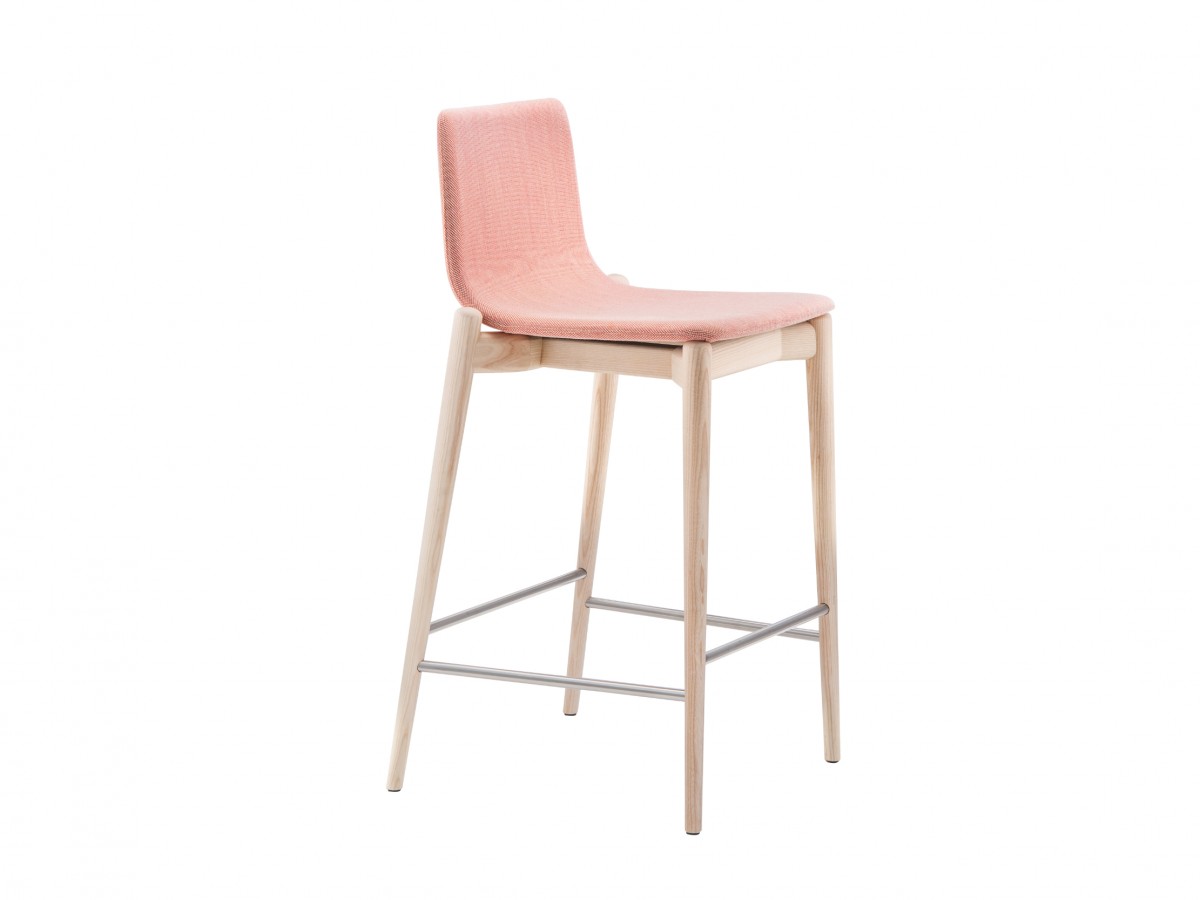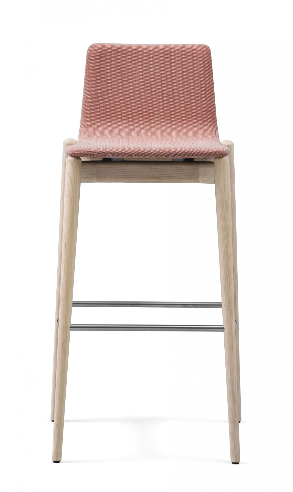 • Barstool with upholstered shell, solid ash wood frame and stainless steel footrest. Seat height 655 mm.
