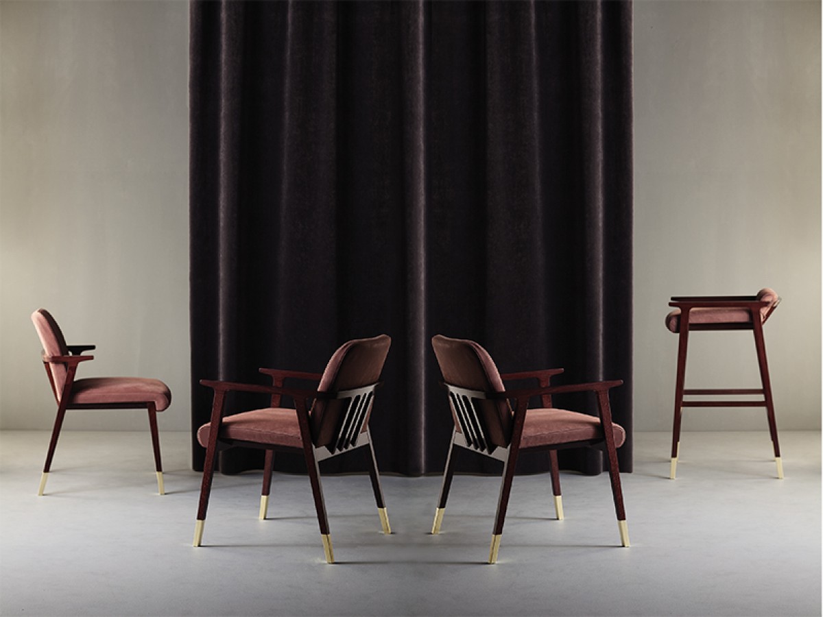 - Attention is paid to creating comfortable upholstered furniture, using wood that adds warmth, combining colours effectively and conjuring up a blend of the 50s style and Renaissance geometric patterns.