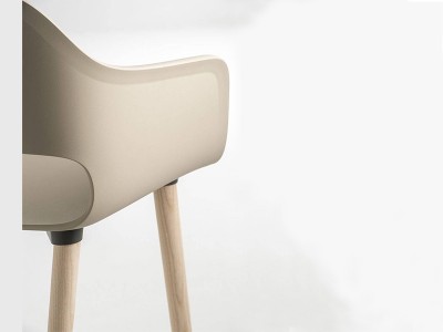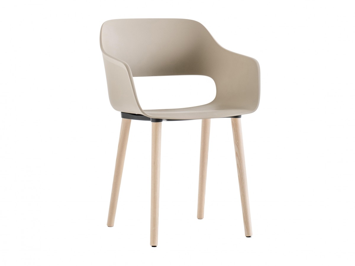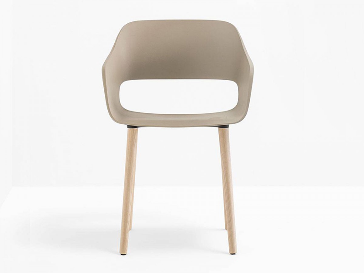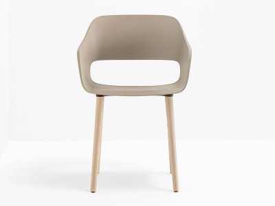 - The functionality of the polypropylene shell is combined with solid ash wood legs.