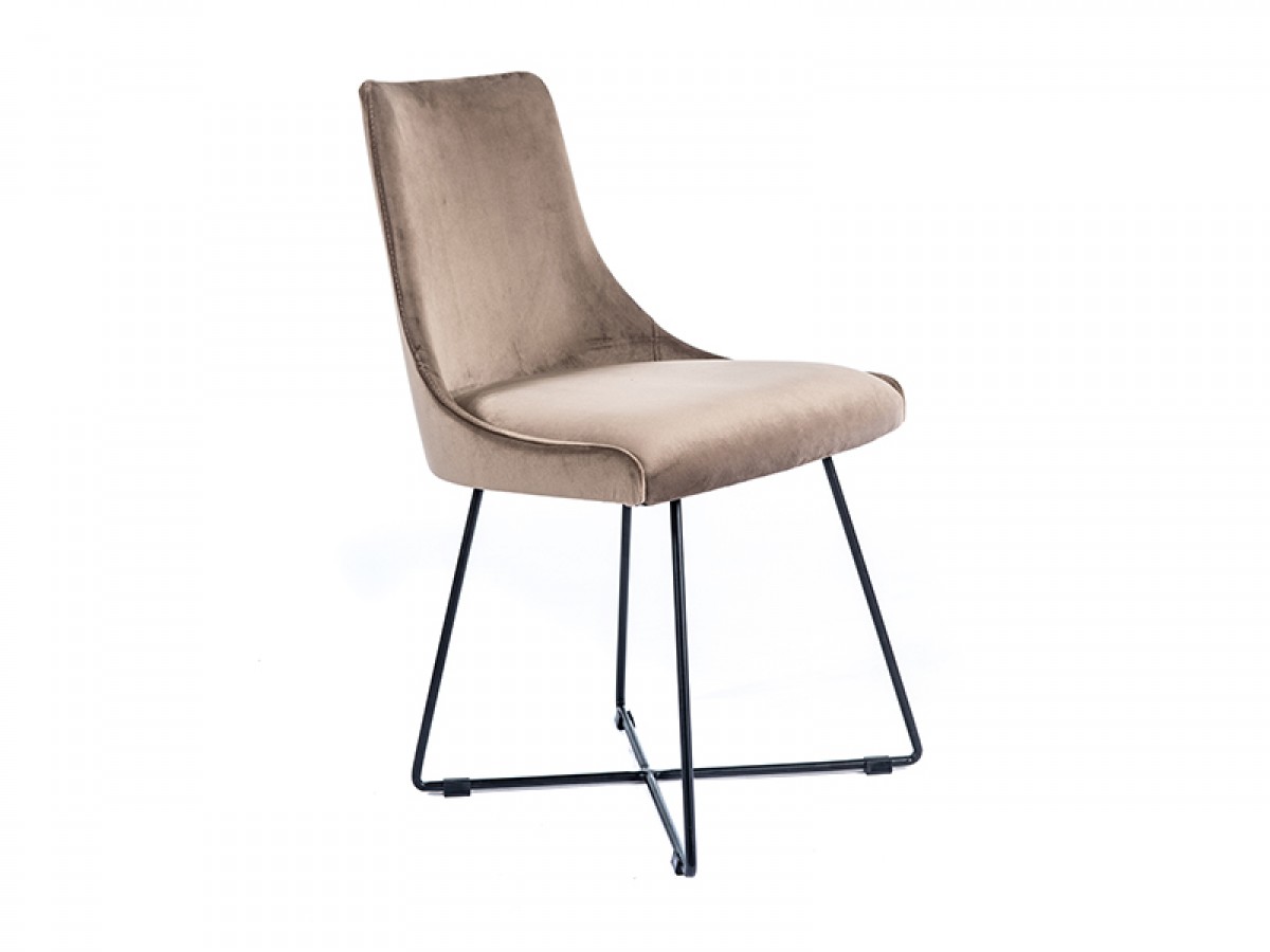 - Chair with metal frame and rounded backrest.