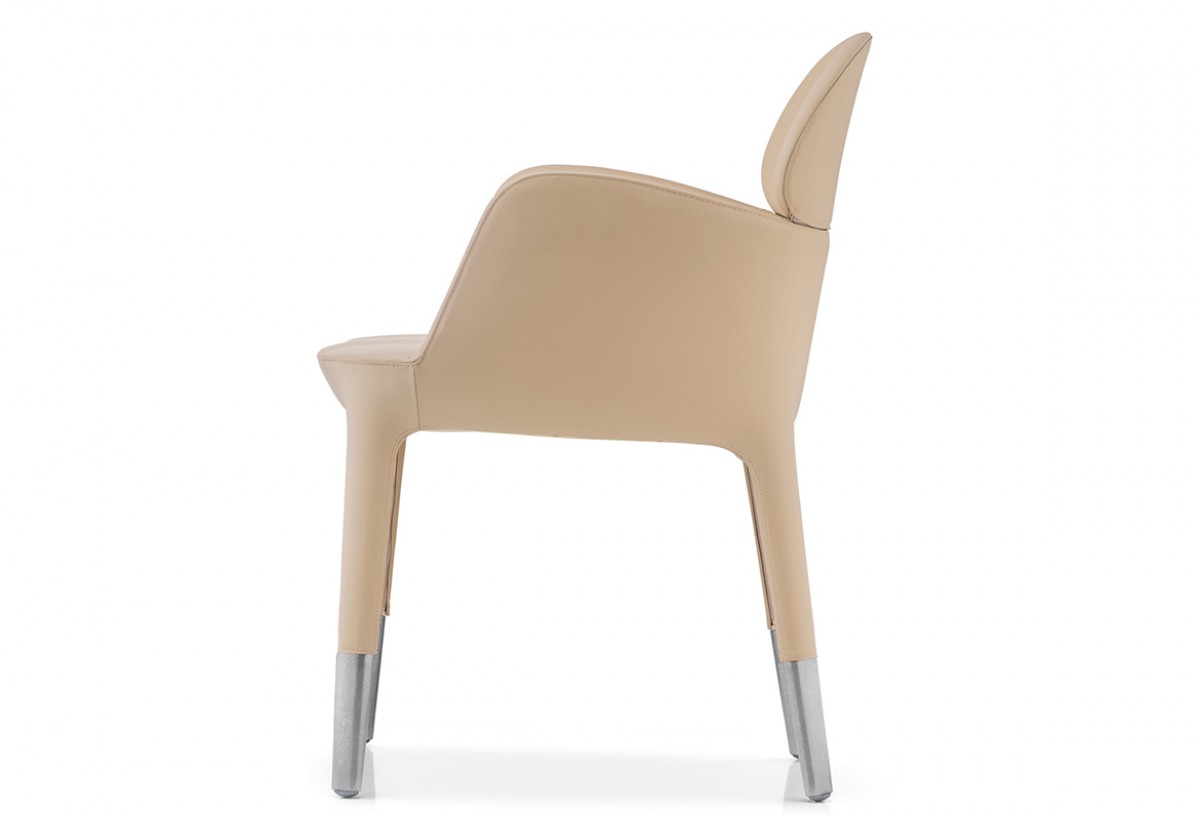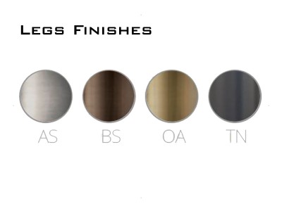 - Finishes: upholstery in real leather or fabric, satin aluminum legs or brushed bronze or black nichel.