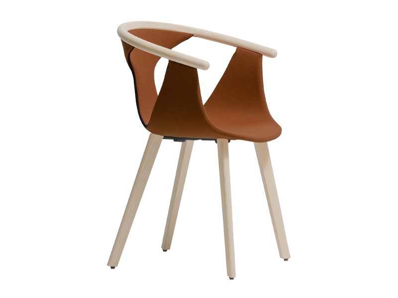 - Armchair with polyurethane foam padded shell, bent solid ash wood backrest and solid ash wood legs;