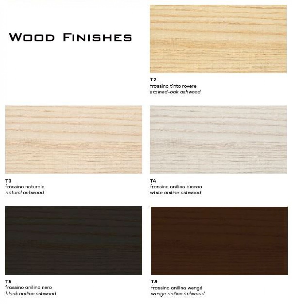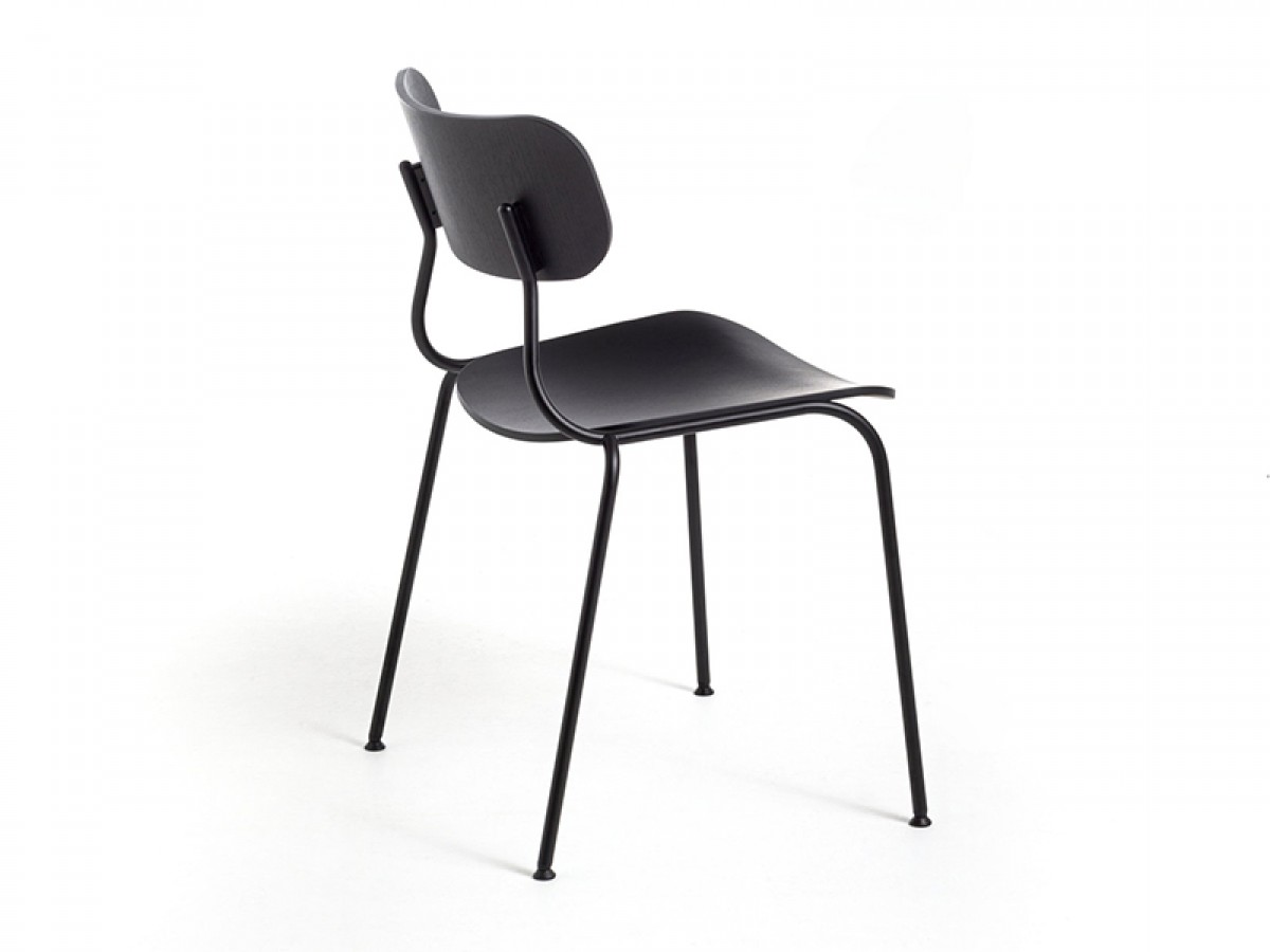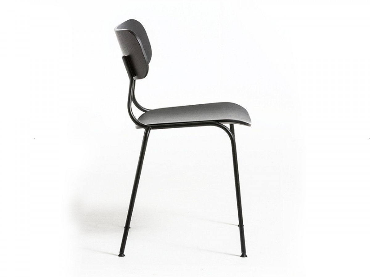 • On this frame are fitted the seat and curved back, in ash veneered plywood – in five colours:  Oak-stained ash/ Natural ash / White aniline ash/ Black aniline ash / Wenge aniline ash.