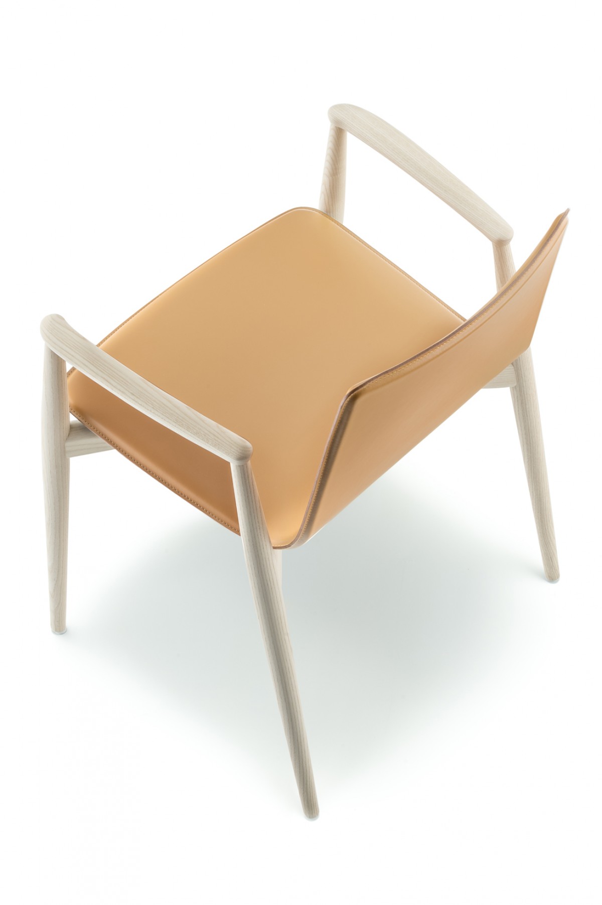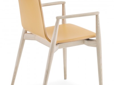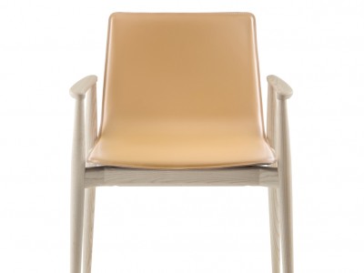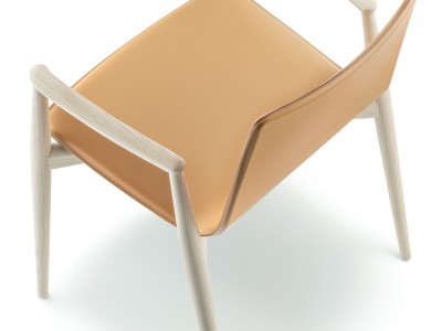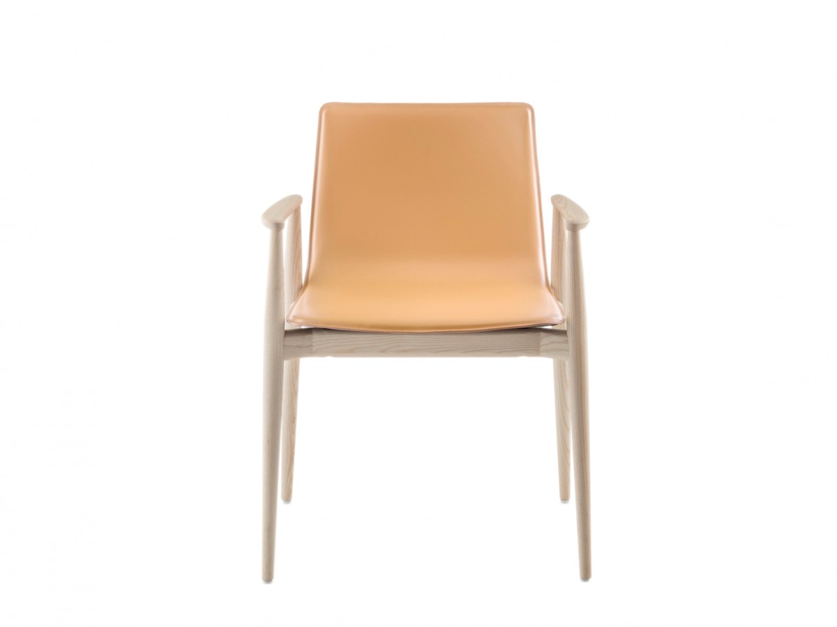 • Armchair with genuine leather shell, solid ash wood frame and armrests.