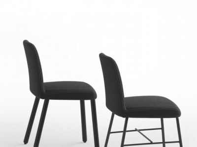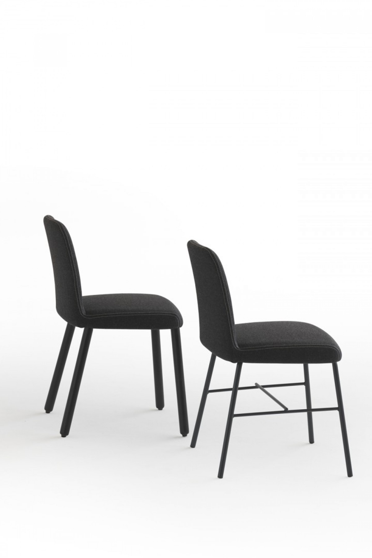 - 4-leg chair with steel frame and shell upholstered in fabric.