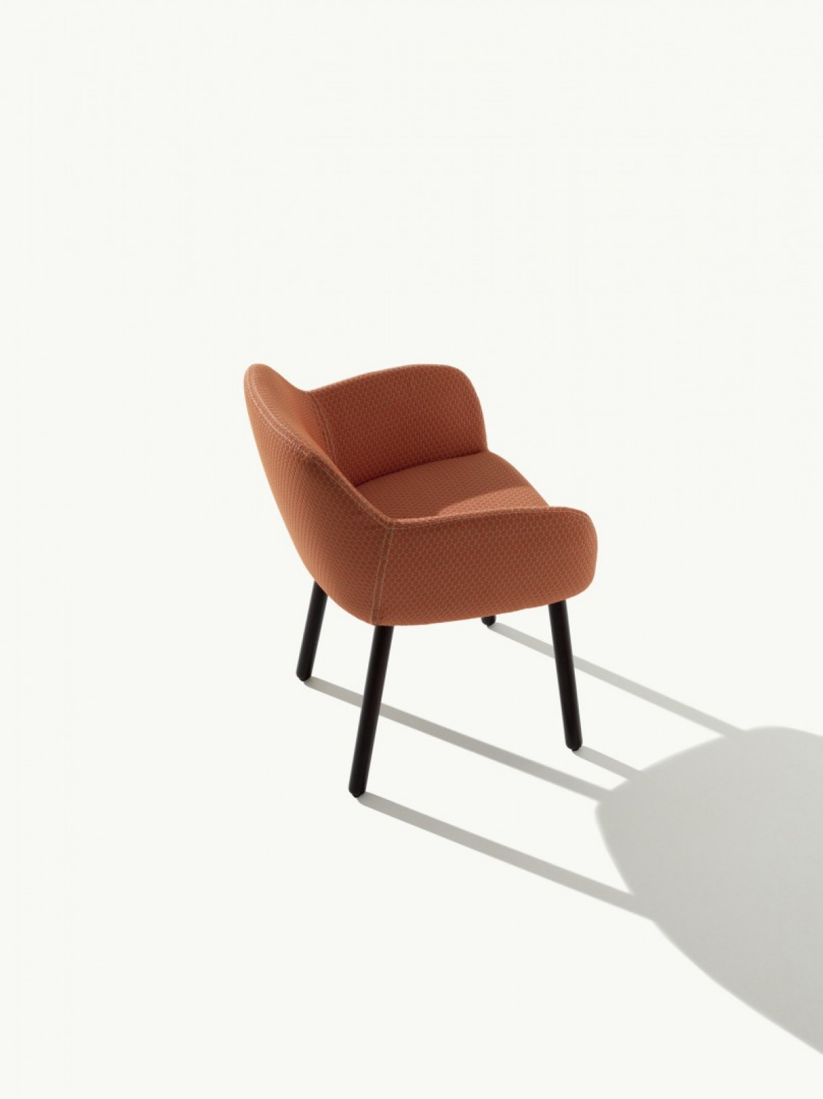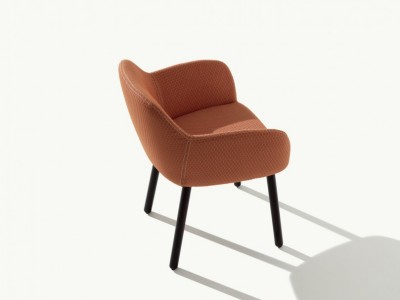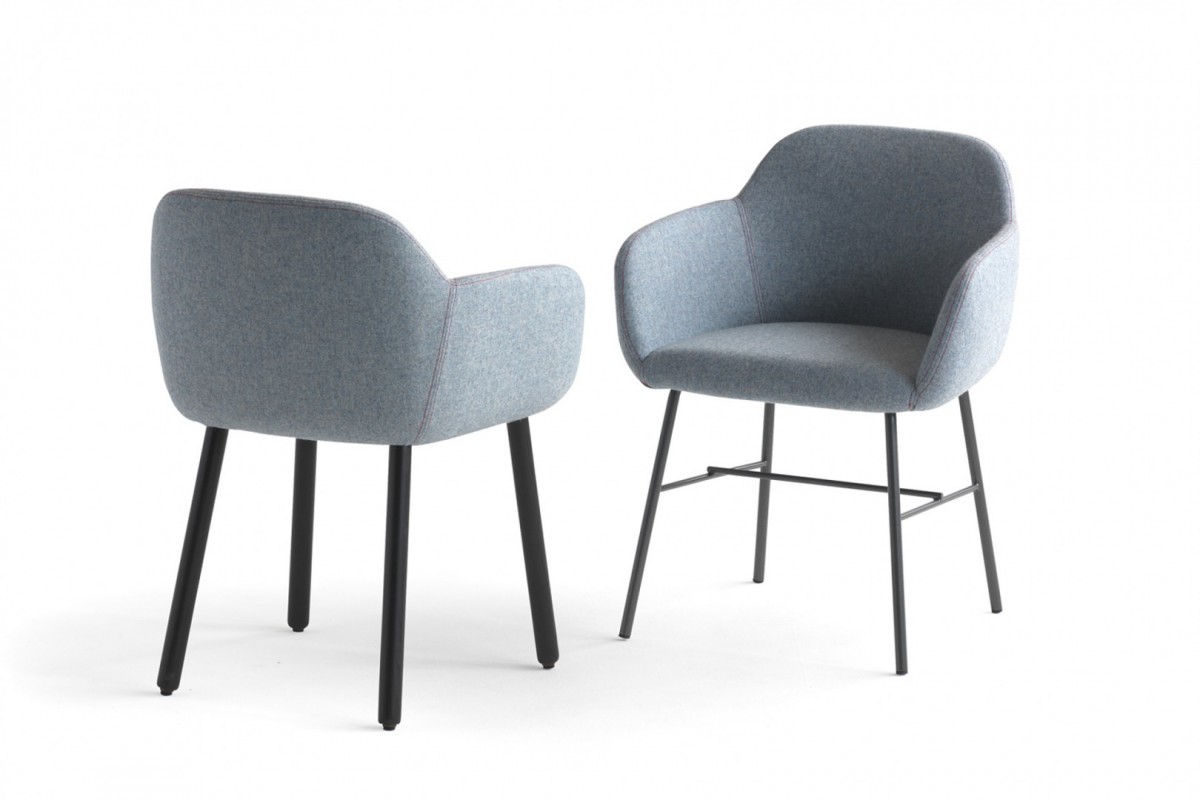 - Chair with armrest, with wooden frame and shell upholstered in fabric.