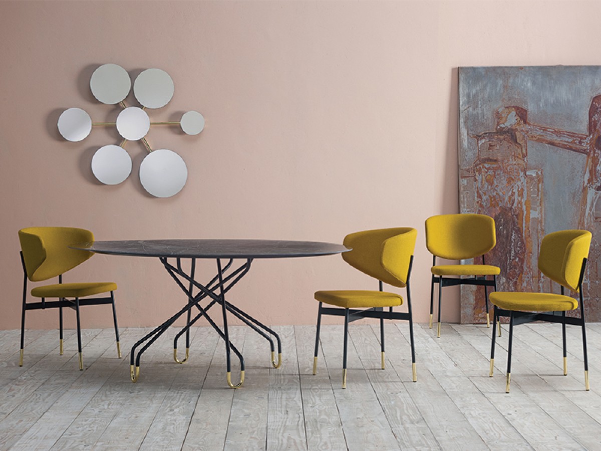 • Silk A armchair has a metal frame, seat and back  upholstered in fabric, faux leather or real leather.