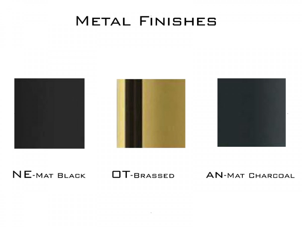 • The frame comes in graphite matt or mat black finish, with brassed tubular metal caps.