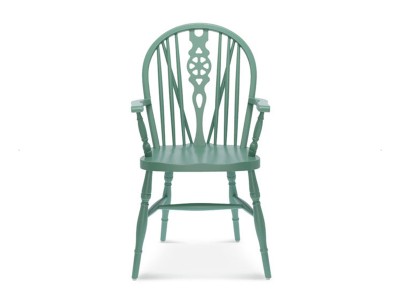 • The seats of Windsor chairs were often carved into a shallow dish or saddle shape for comfort. Traditionally, the legs and uprights were usually turned on a pole lathe. The back and sometimes the arm pieces (if arms are present) are formed from steam bent pieces of wood.