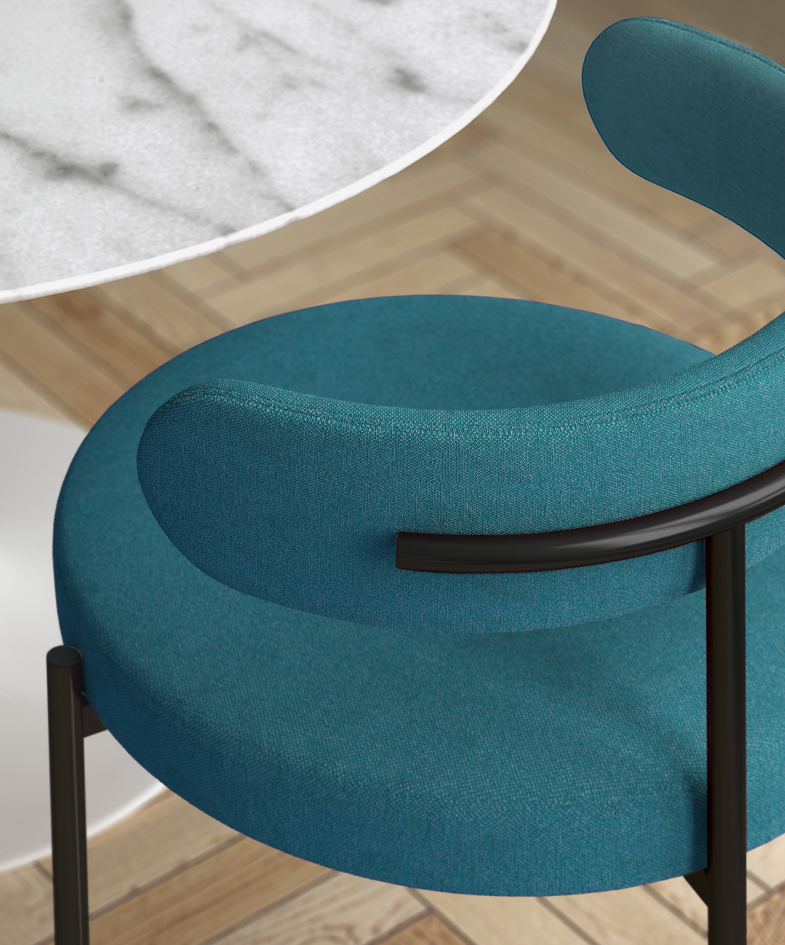 • The back appears suspended, thanks to an internal fixing system. A complete collection to hug the guest in a warm embrace.
