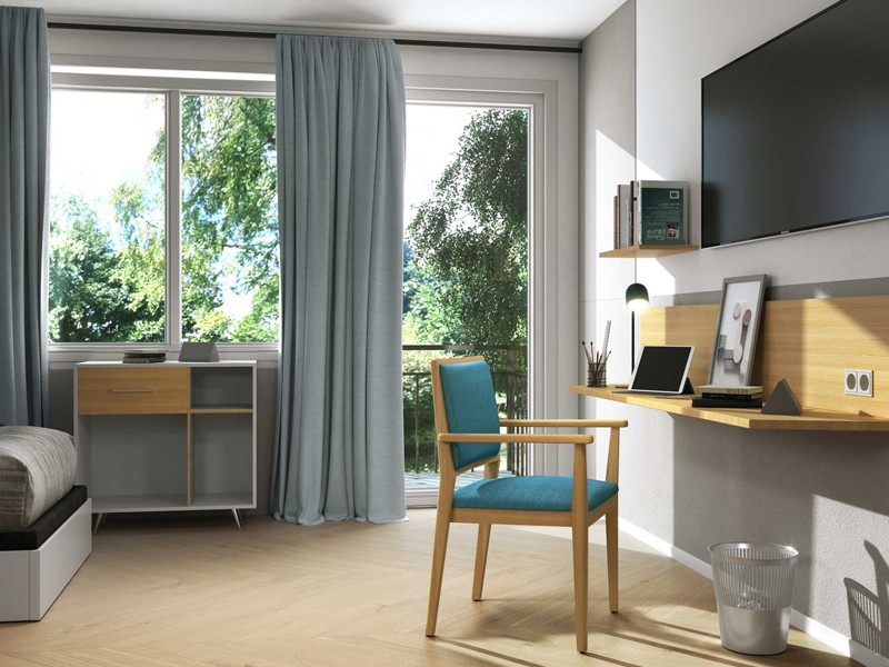 - Ideal for the Health & Care sector, thanks to their stackable nature and seatback's drawer-like handle.
