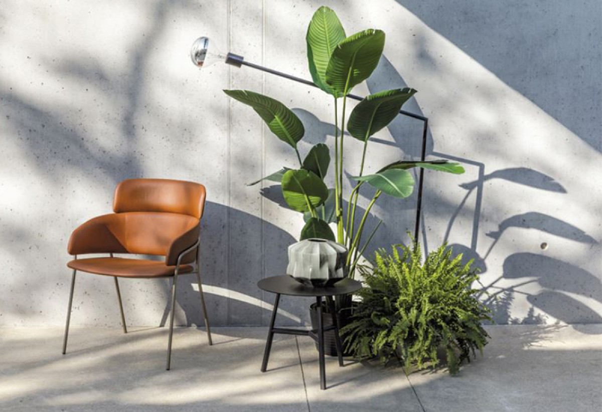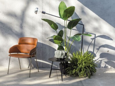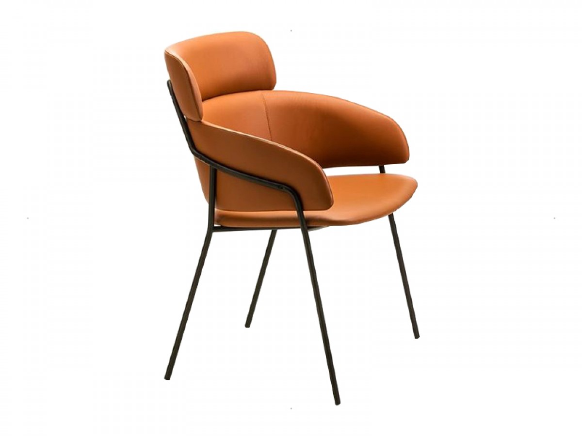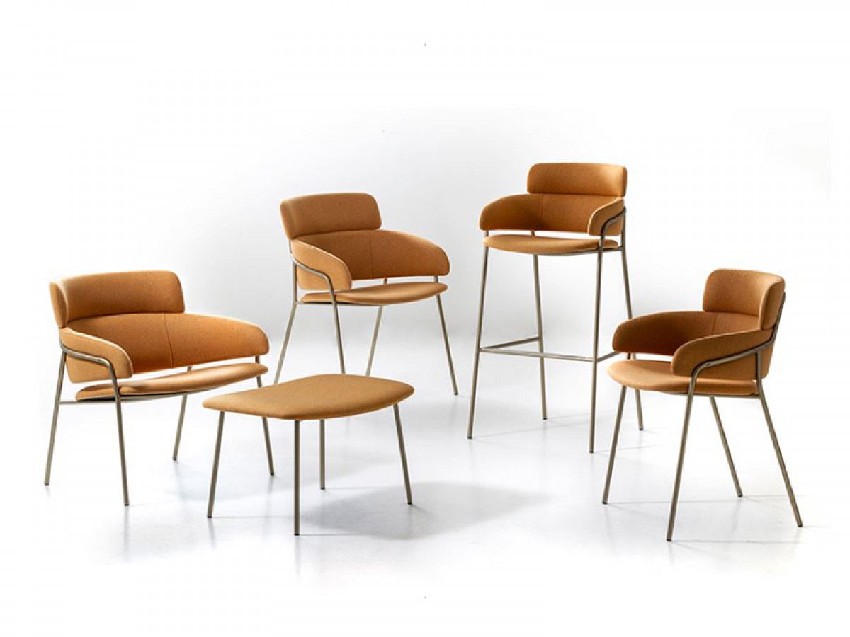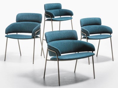 - Thin painted steel tube frame embraces a double padded back, that combines elegance, lightness and strength.