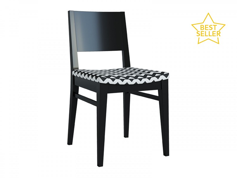 - Beech wood chair with upholstered seat.