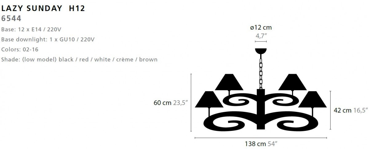 - Base: 12 x E14 / 220V / MAX. 50W