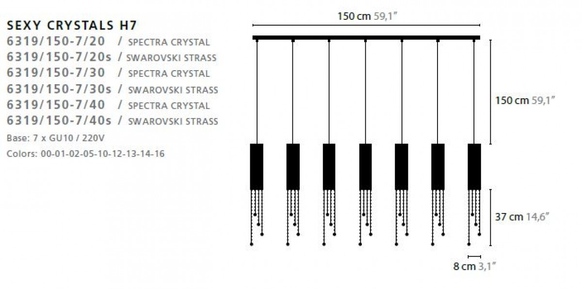 - Base: 7 x GU10 / 220V / MAX. 50W