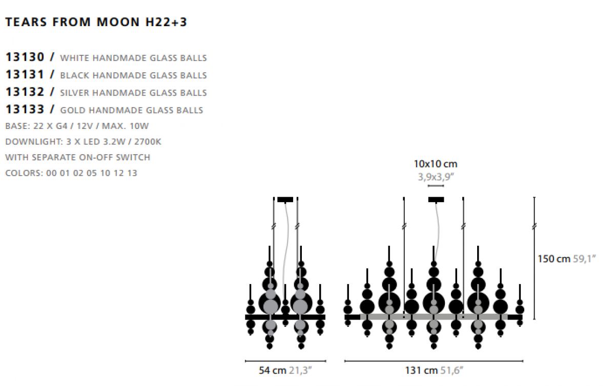 - Base: 22 x G4 / 12V / MAX. 10W (not included)
