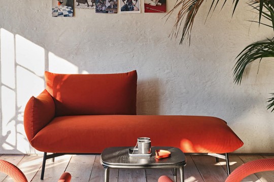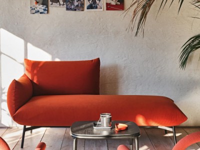 • Chaise longue with lacquered metal legs.