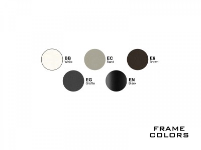 • Frame available in different finishes: white, sand, grafite, brown steel, black.