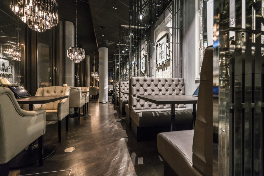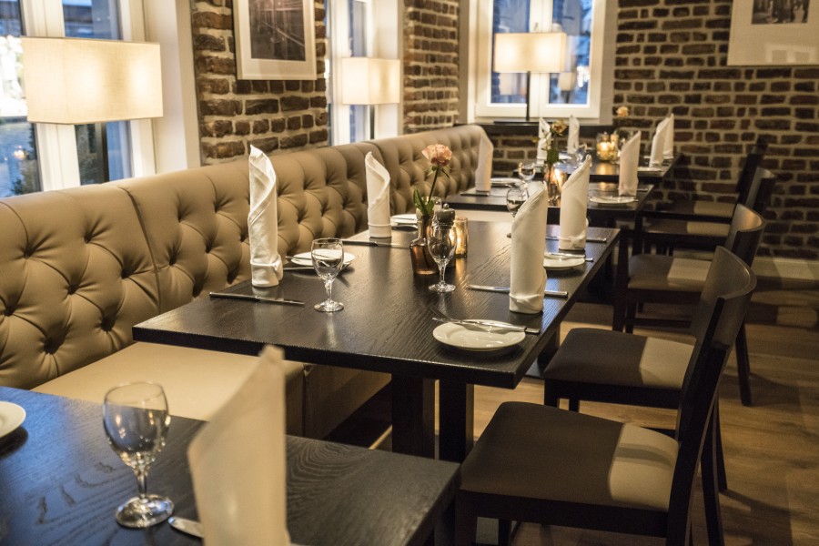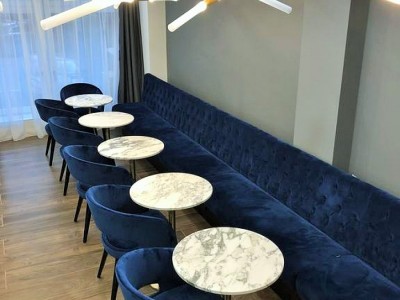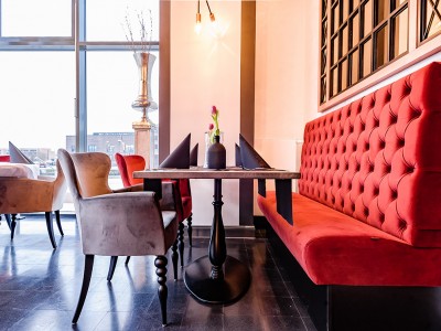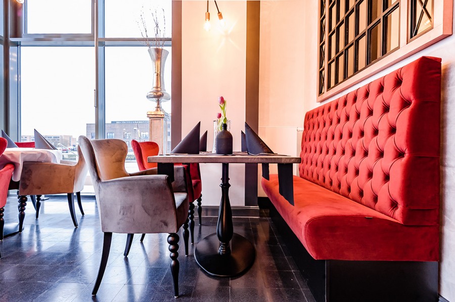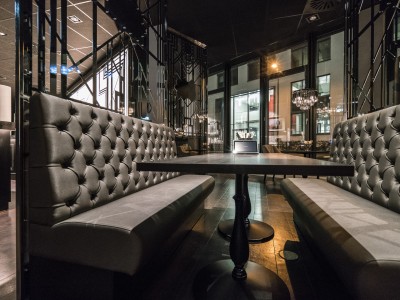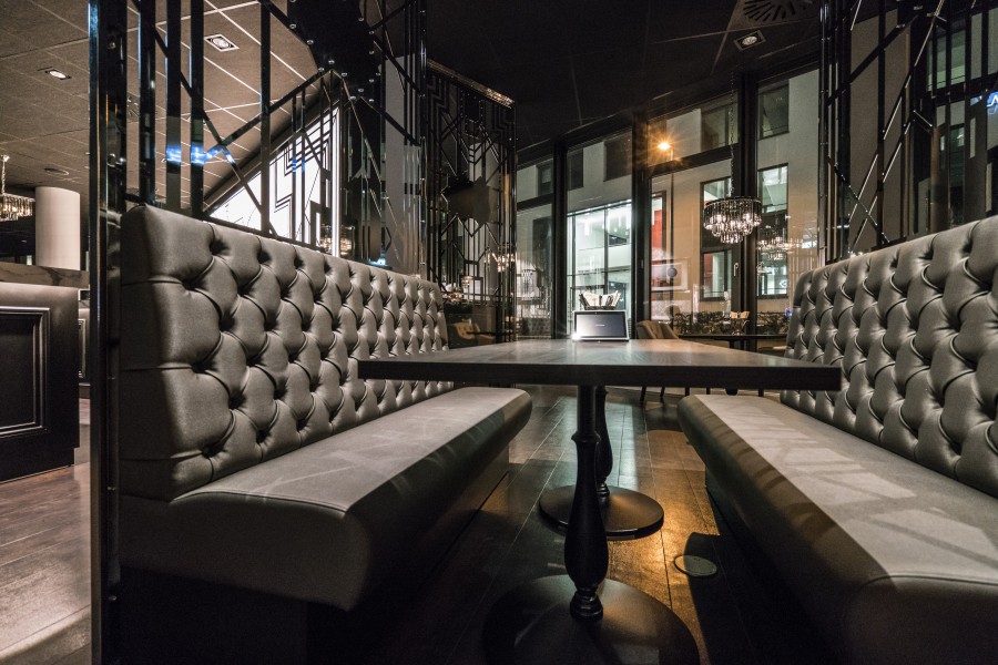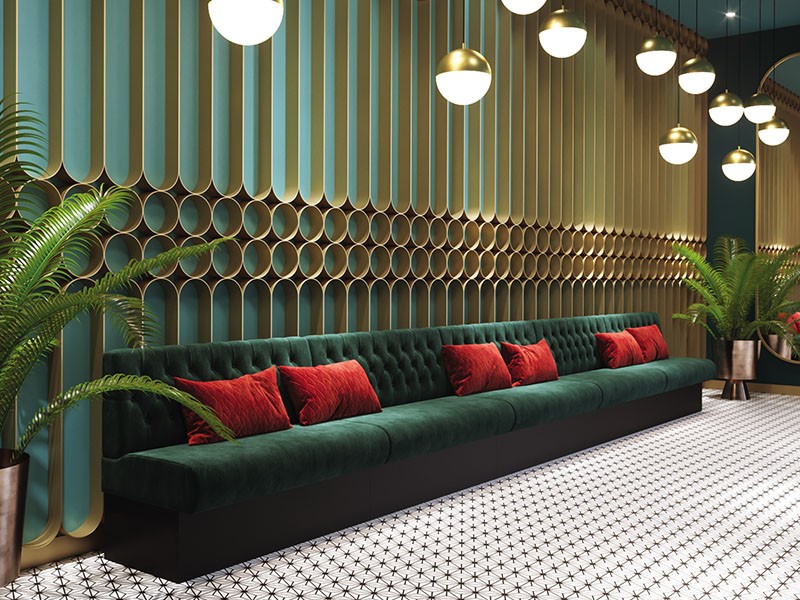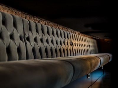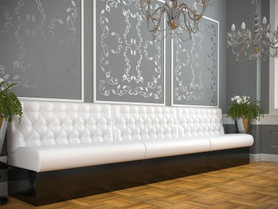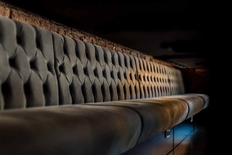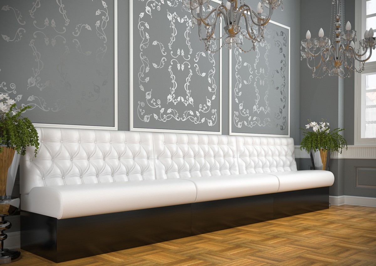 • Modular dining bench with a Chesterfield type upholstery on the backrest.