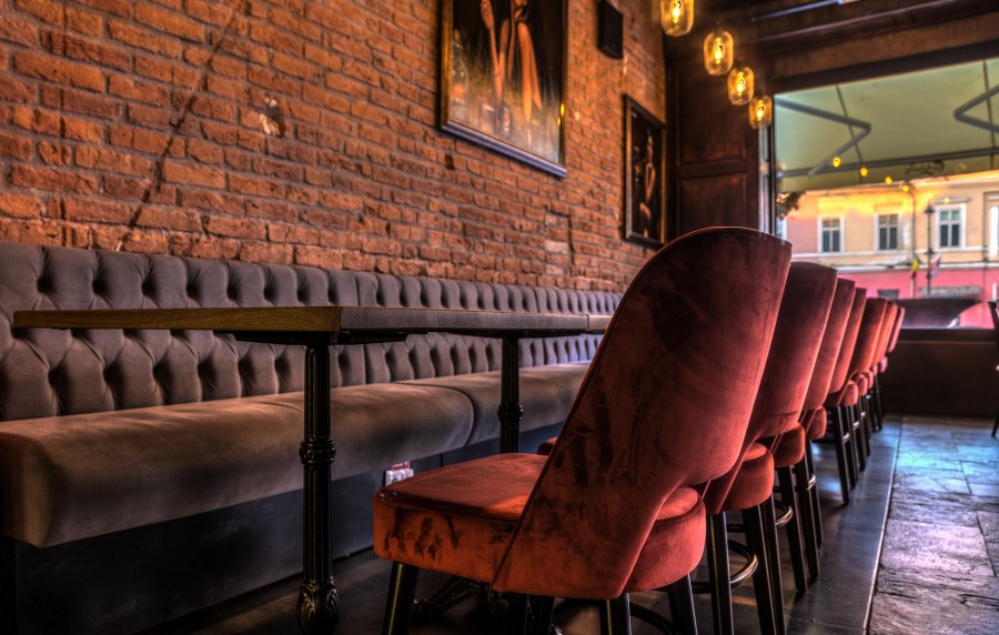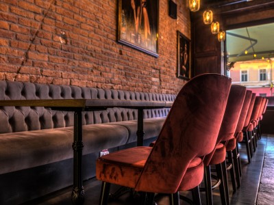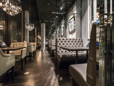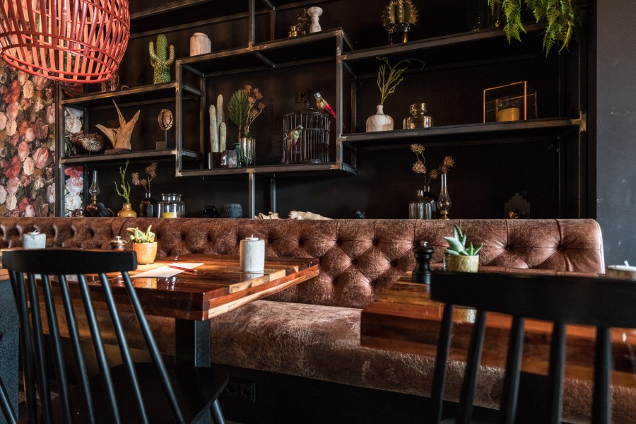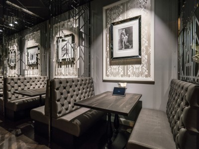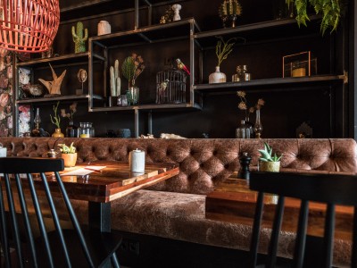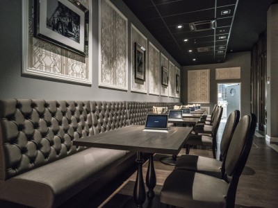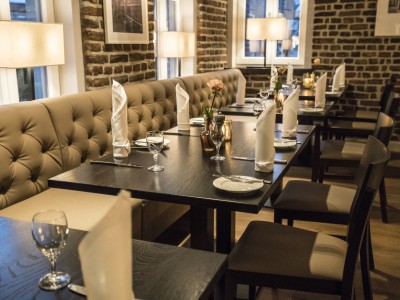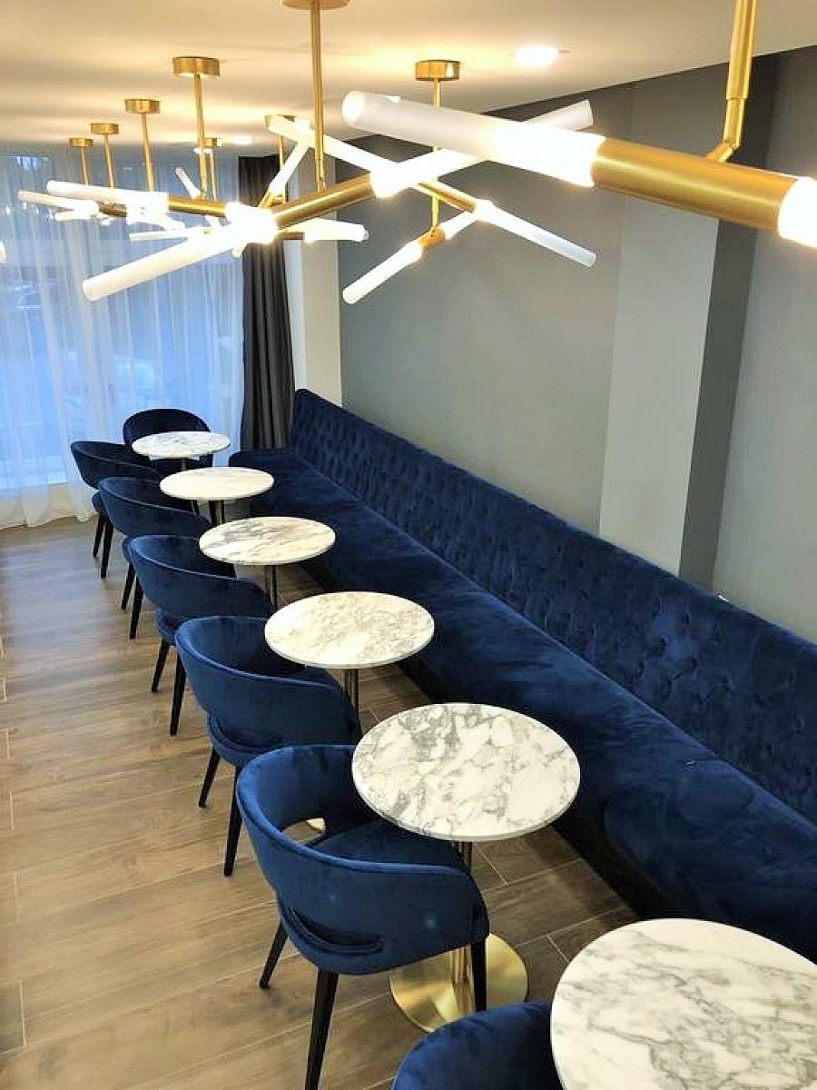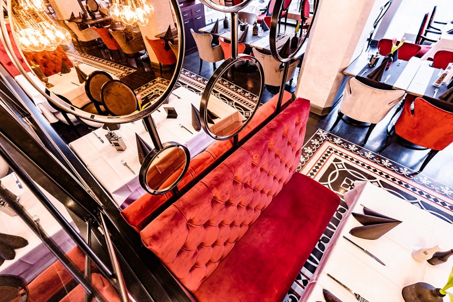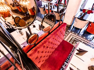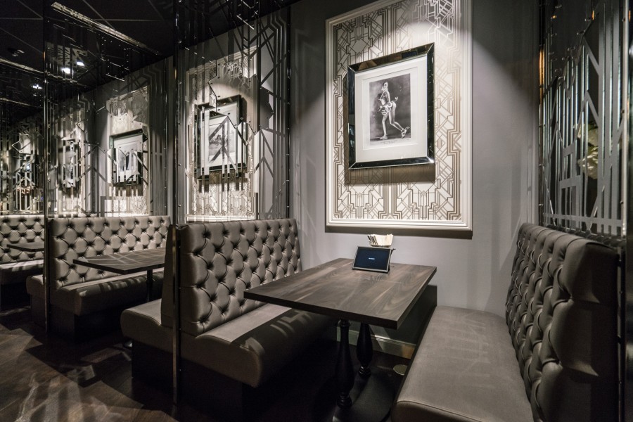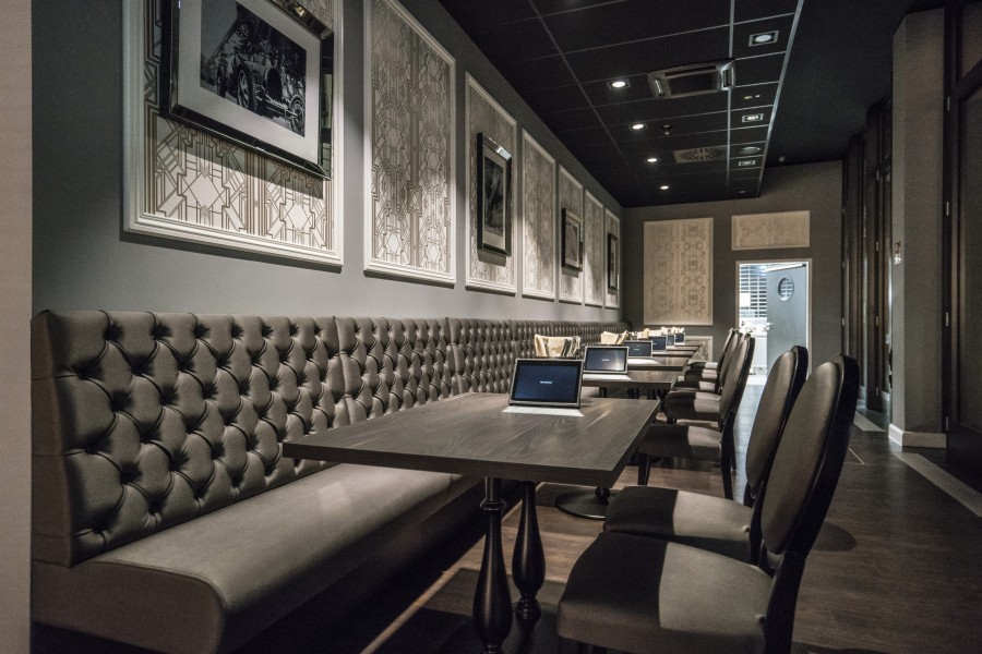 • Modular dining bench with a Chesterfield type upholstery on the backrest.