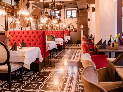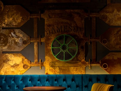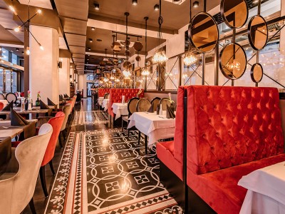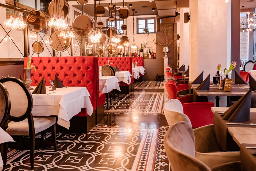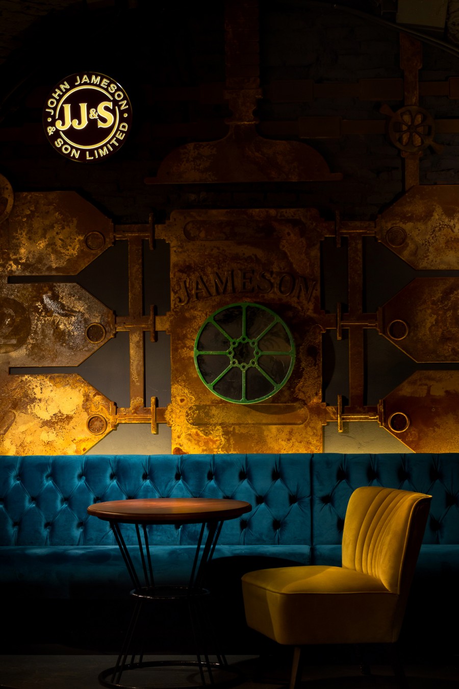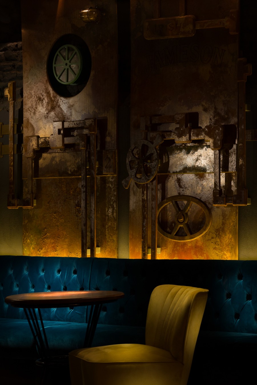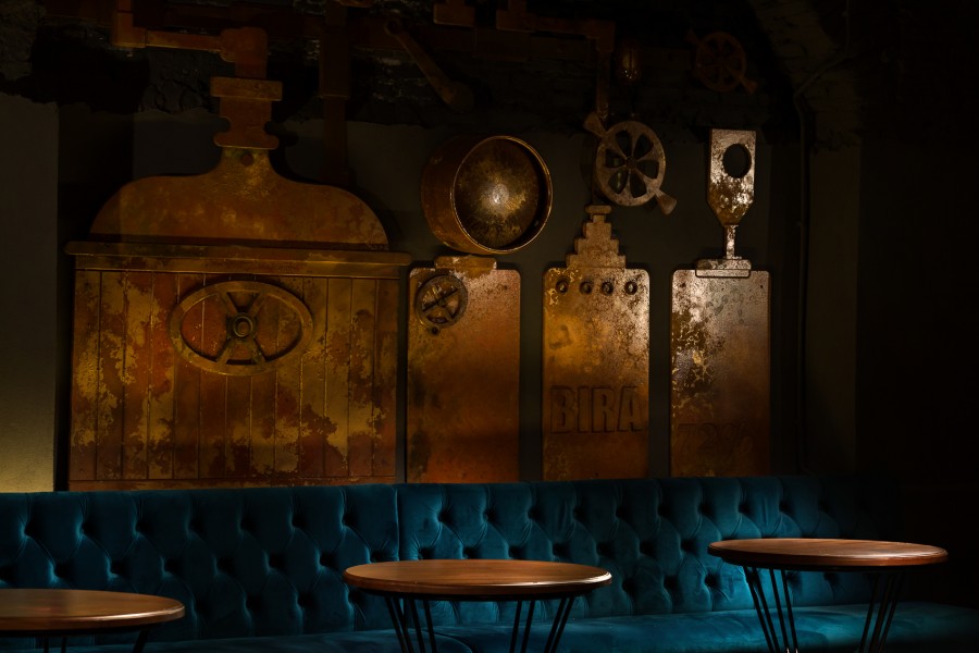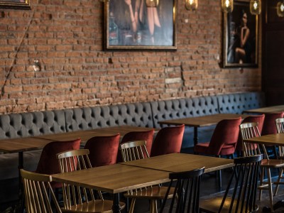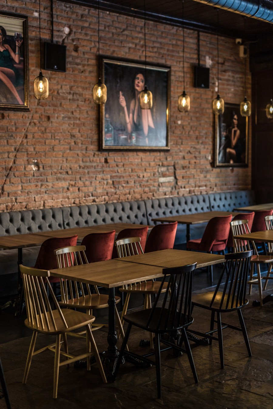 • Modular dining bench with a Chesterfield type upholstery on the backrest.