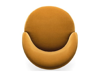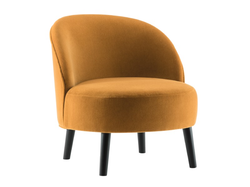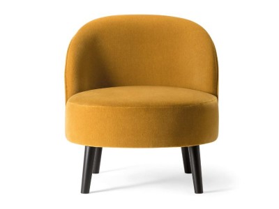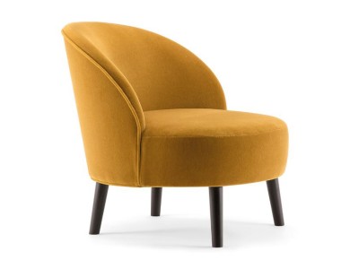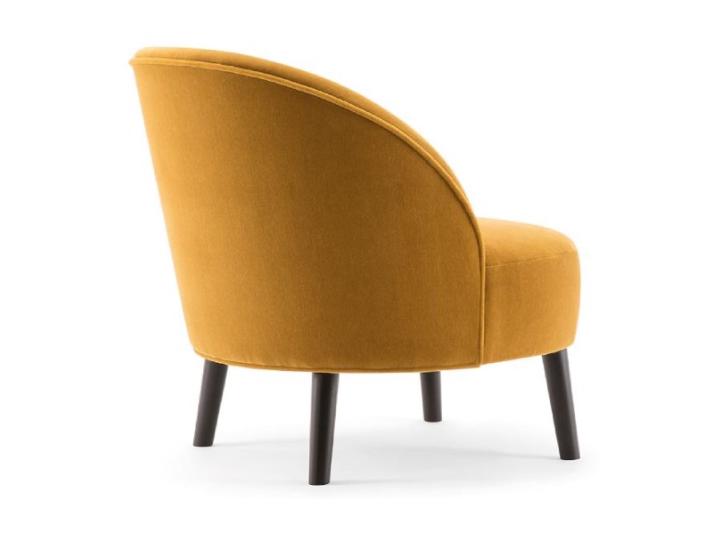 • A seamlessly connected perfectly round seat and a gracefully curved backrest characterize the Ginger lounge chair, while four robust conical wooden legs provide stability.
