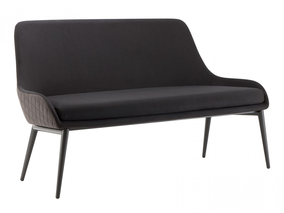 • Black metal frame sofa, fully upholstered.