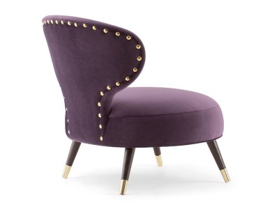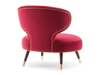• The lounge chair has a soft seat and a low backrest.