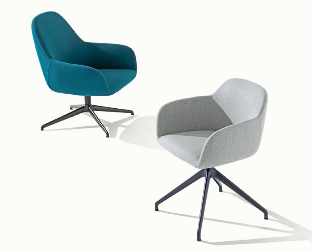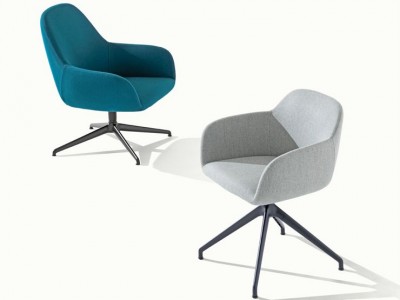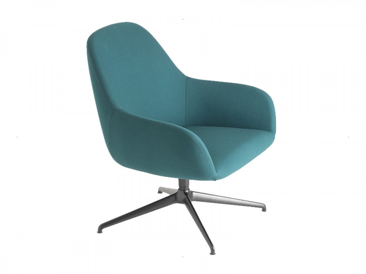 - Swivel lounge chair upholstered seat and back, with kick-back device.