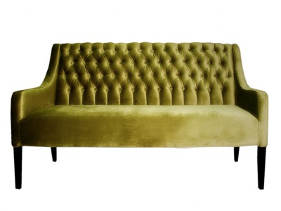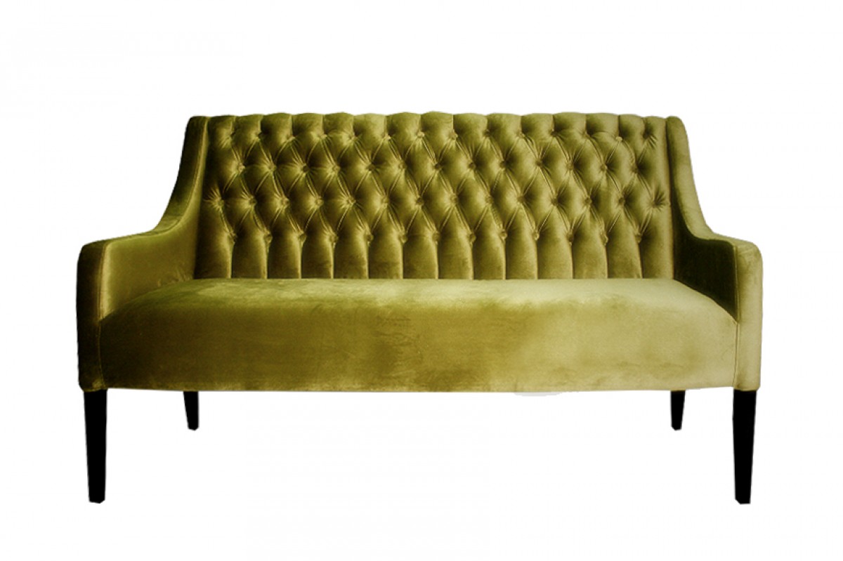 - Upholstered dining bench with decorative capitonate back.