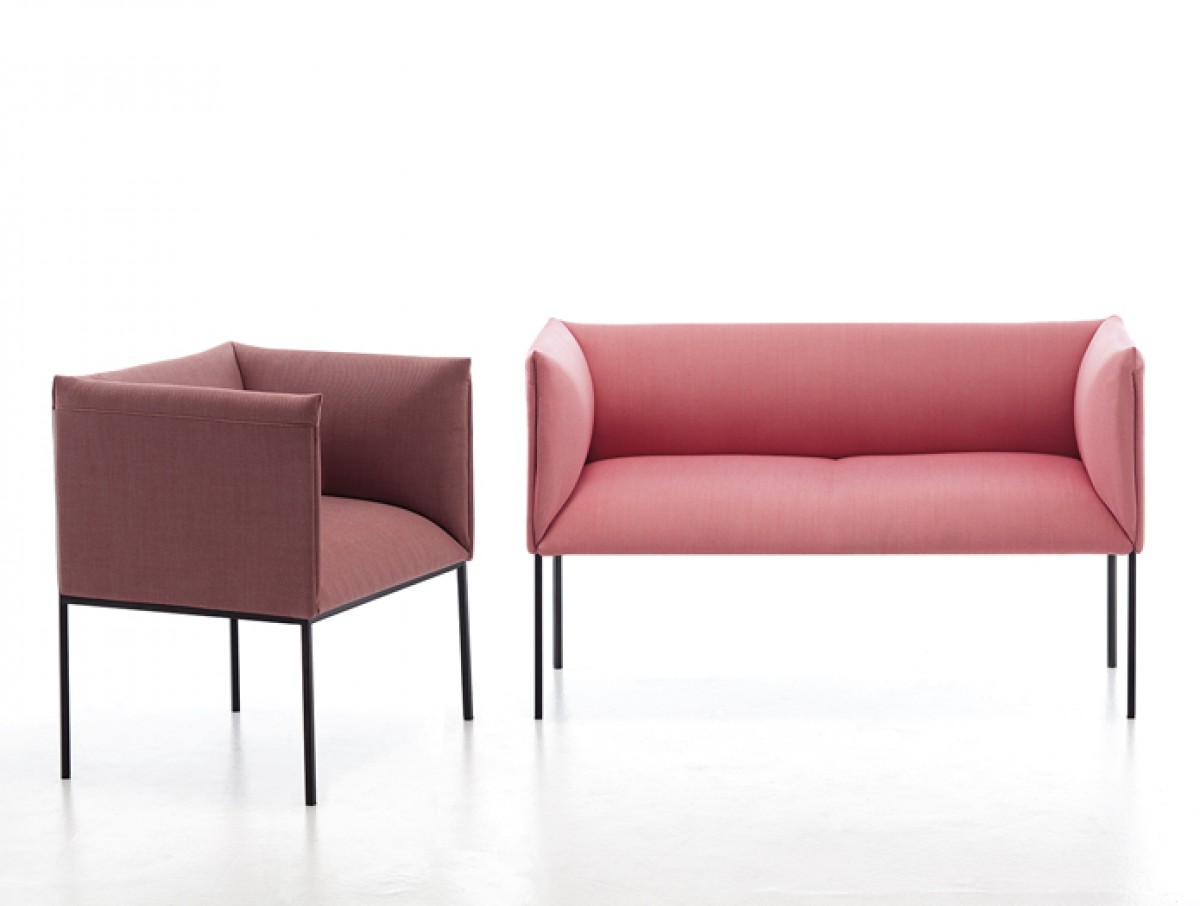 - Two-seats sofa, chromed or painted steel frame, padded seat and back.