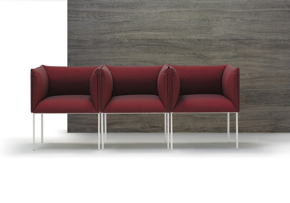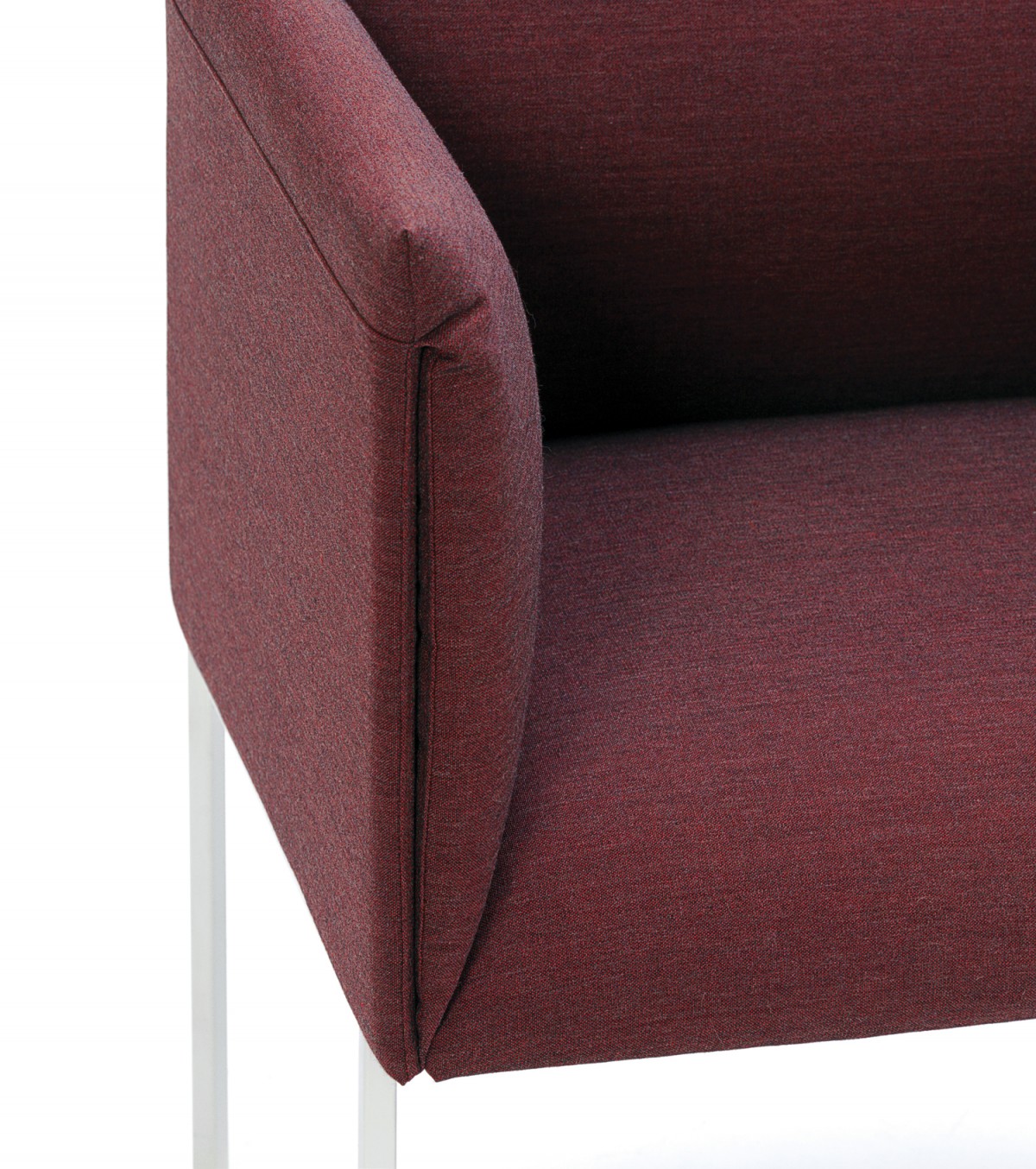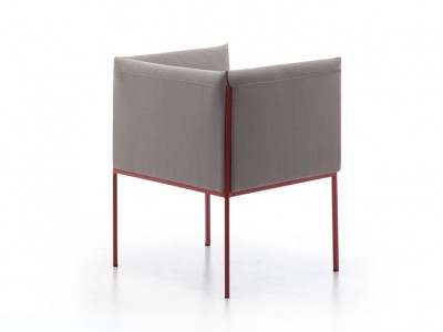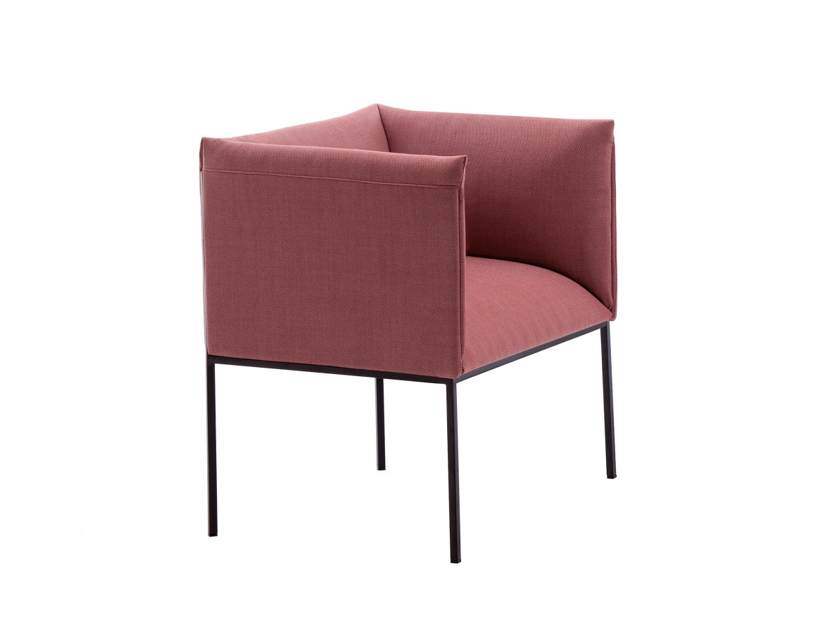 - Armchair with chromed or painted steel frame, upholstered seat and back.