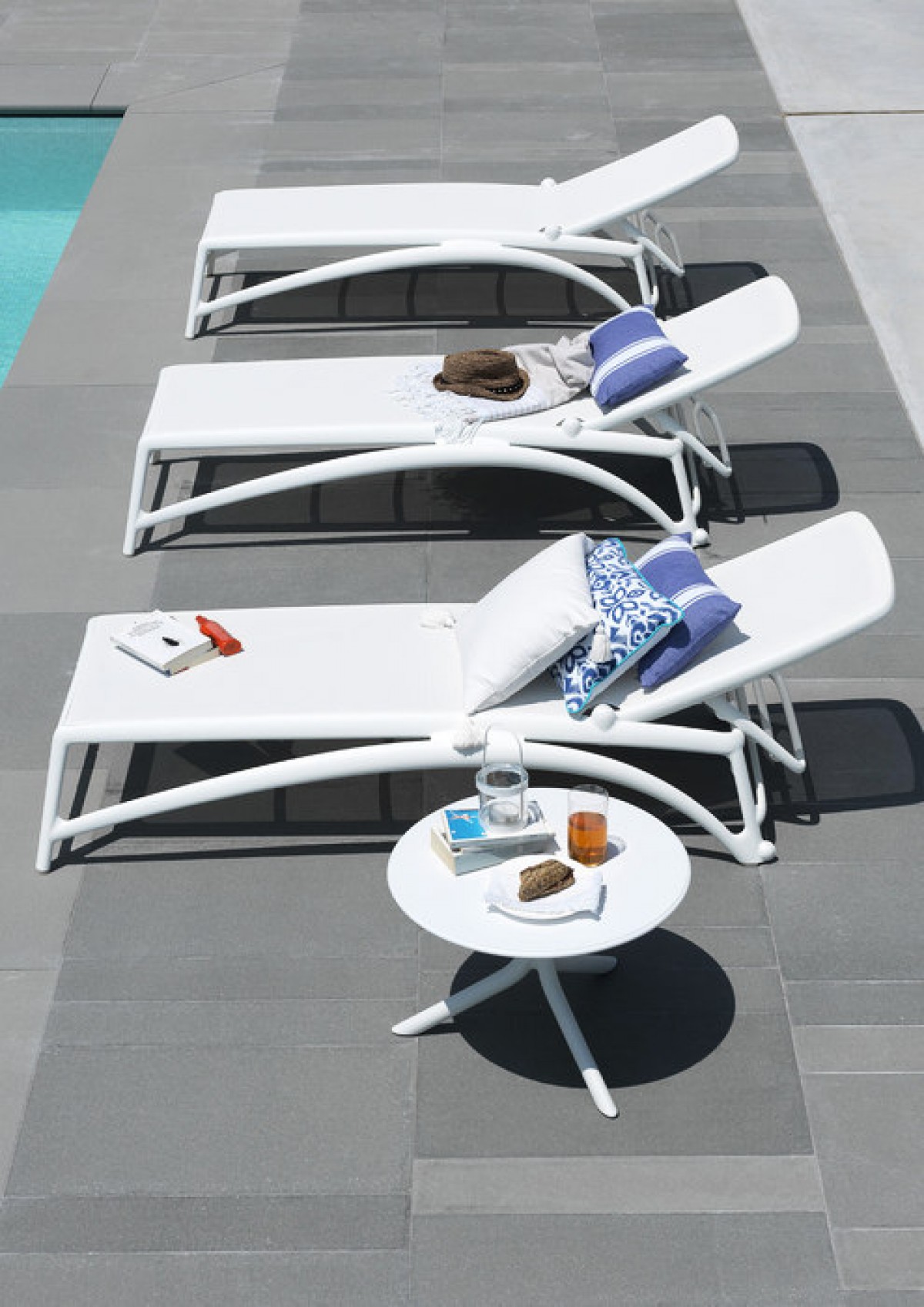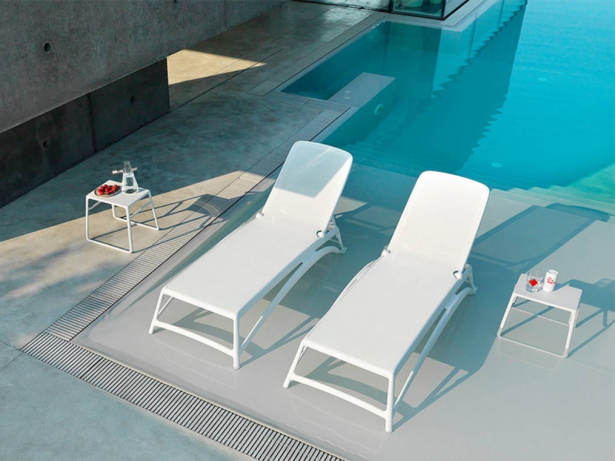 - Sunlounger with frame in polypropylene fiber -glass and cover in breathable synthetic fabric and replaceable.