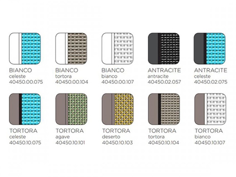 - Synthetic fabric colors:agave, white, tortora, sand, anthracite, blue ciel.