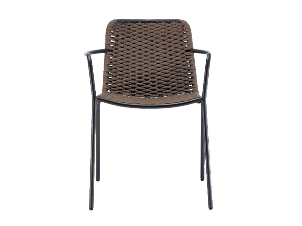 - Galvanized steel stackable armchair covered with textylene rope and rubber.