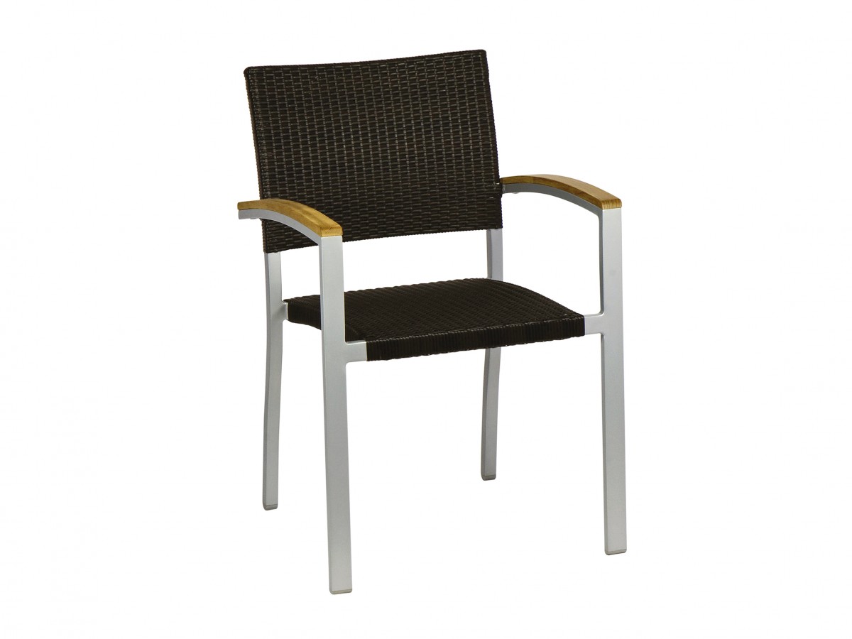 • George is a stackable chair, easy to use, resistant and with light grey plastic weaving.