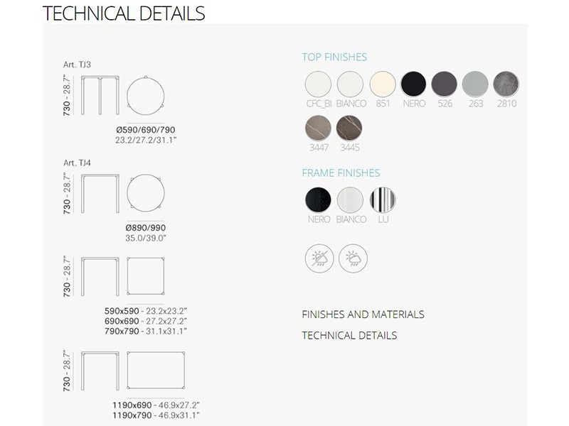 • Aluminium legs, polished or powder coated finish in white or black colour.