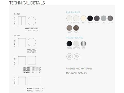 - Aluminium legs, polished (for indoor use) or powder coated finish in white (outdoor) or black (indoor) colour.