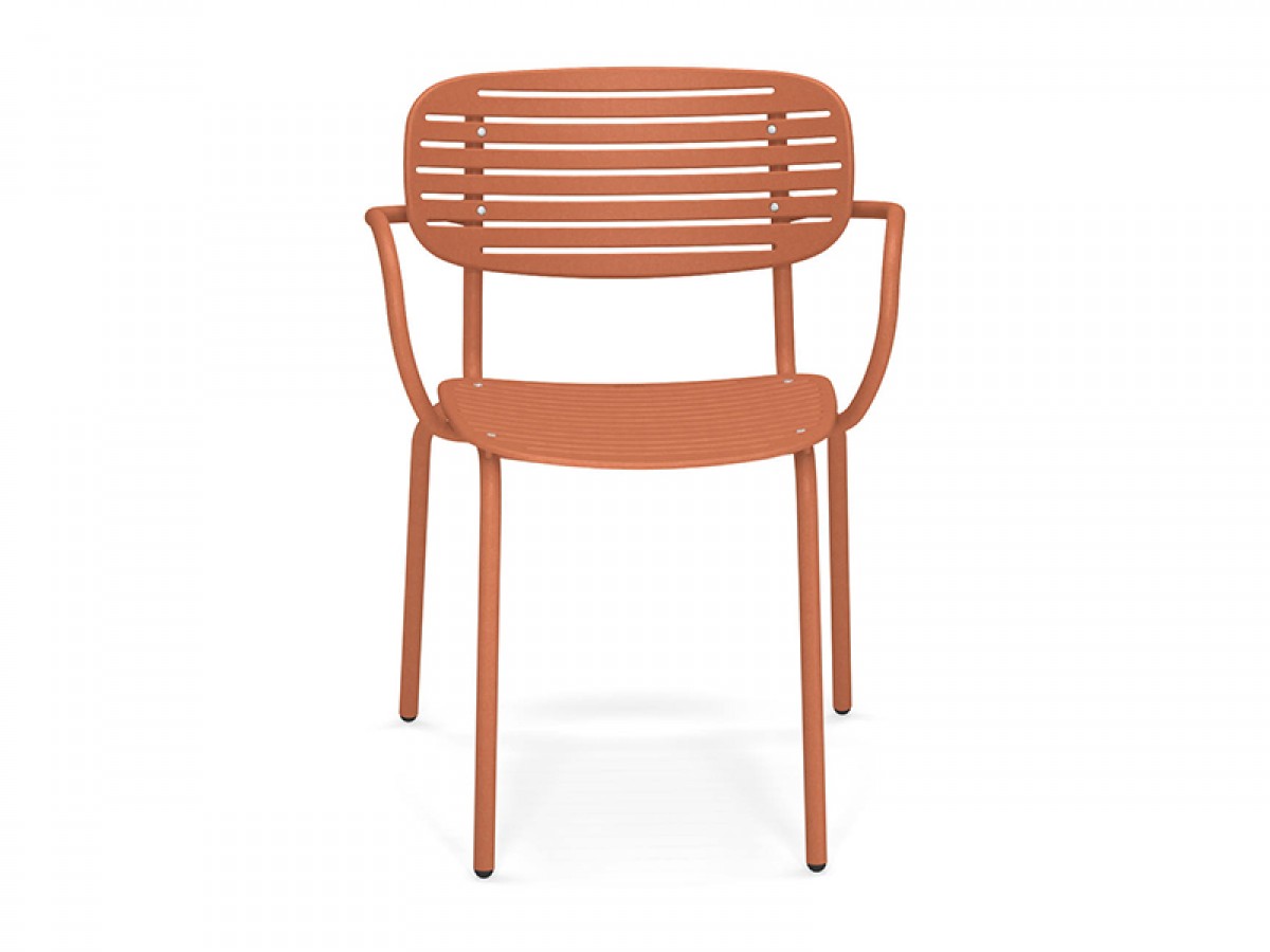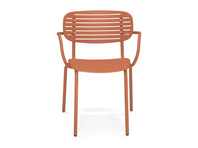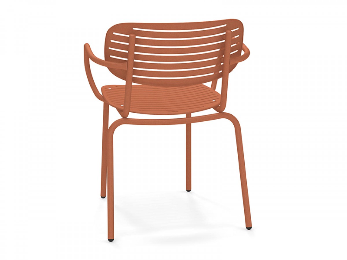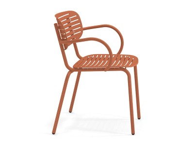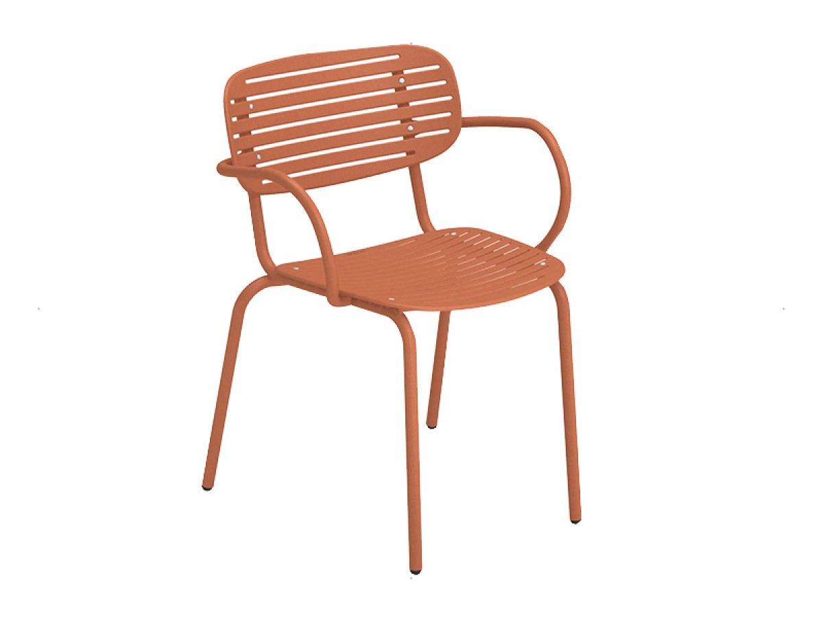 - The structure is made entirely from Fe360 tubular steel, while the seat and back, characterized by the striking graphic design, are in deep-drawn galvanized steel sheet.