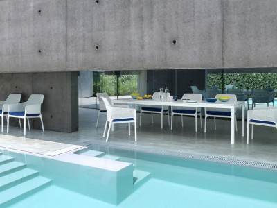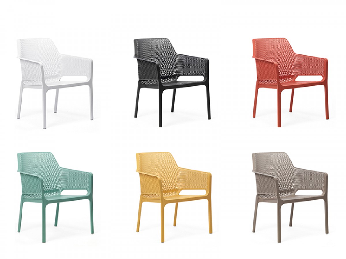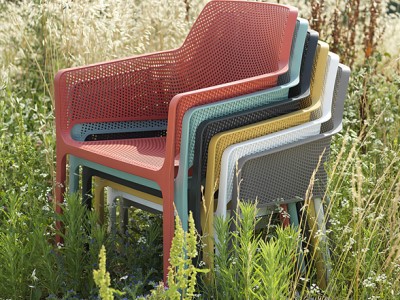 • Stackable armchair made of uniformly colored fiberglass polypropylene resins with uv additives.