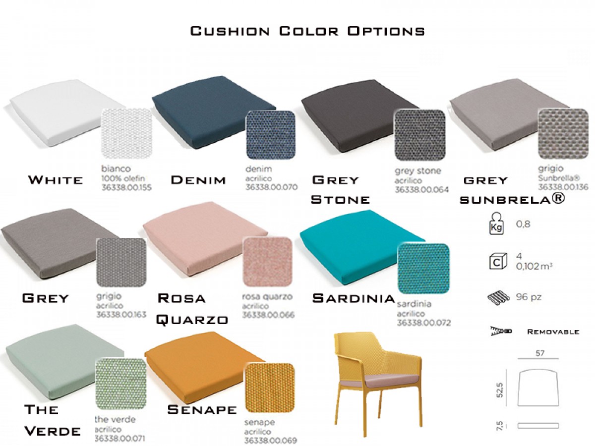 • Cushion available upon request.