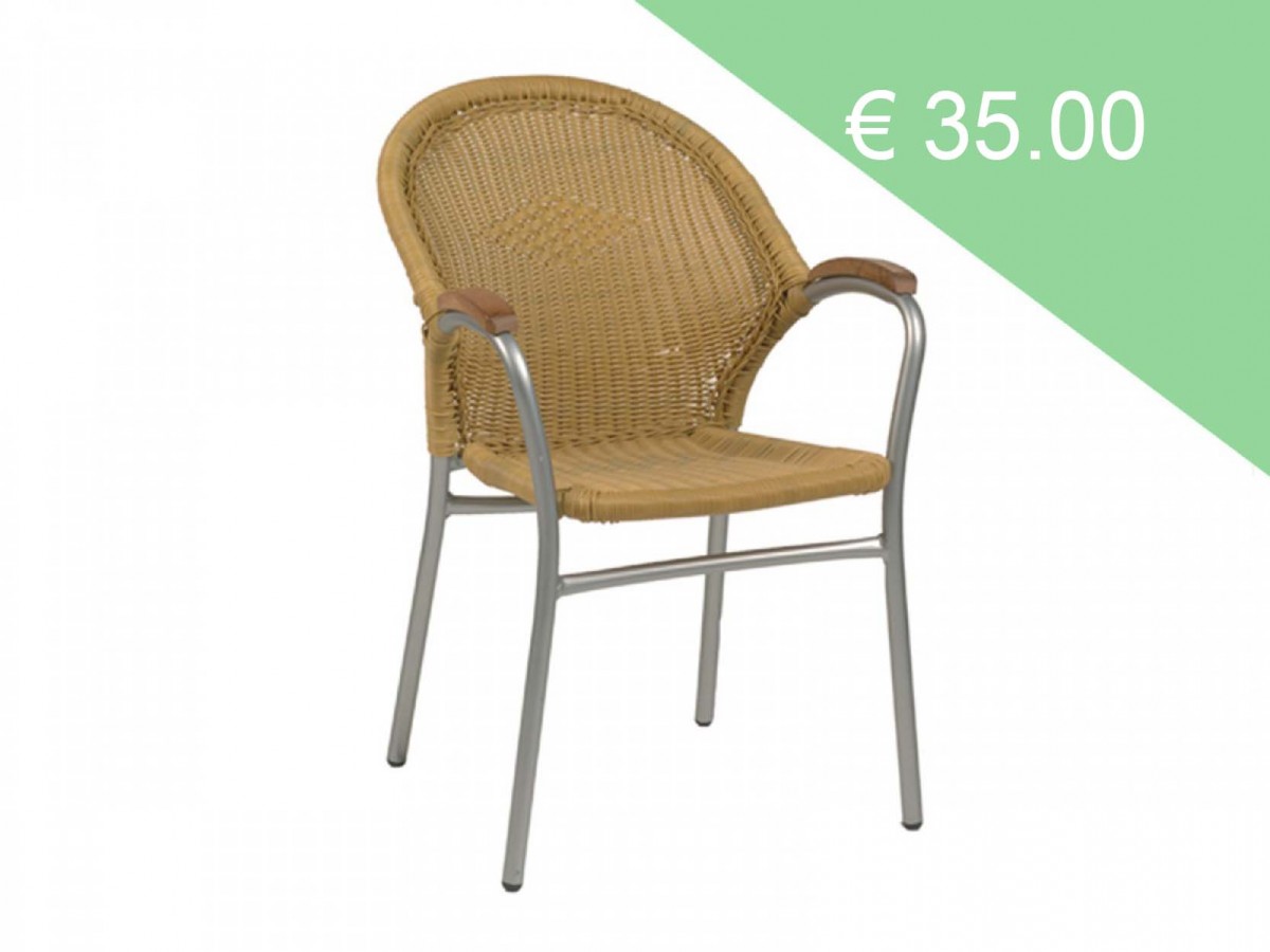 - Stackable aluminum chair in bamboo look, synthetic weaving