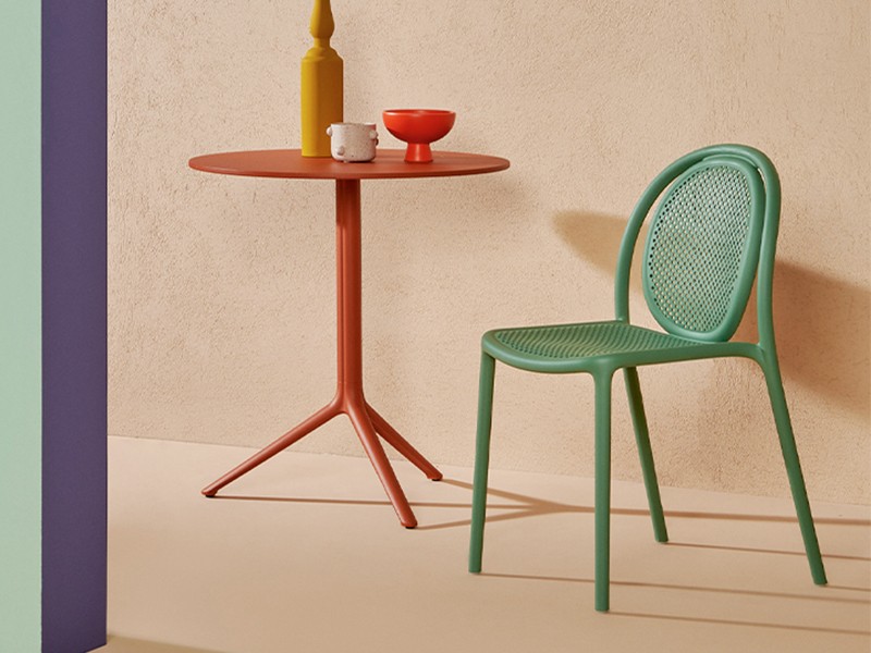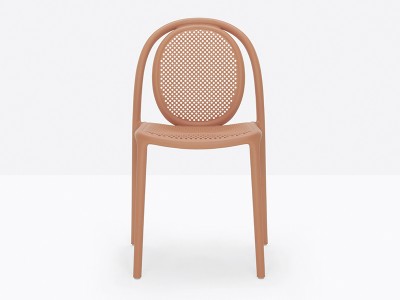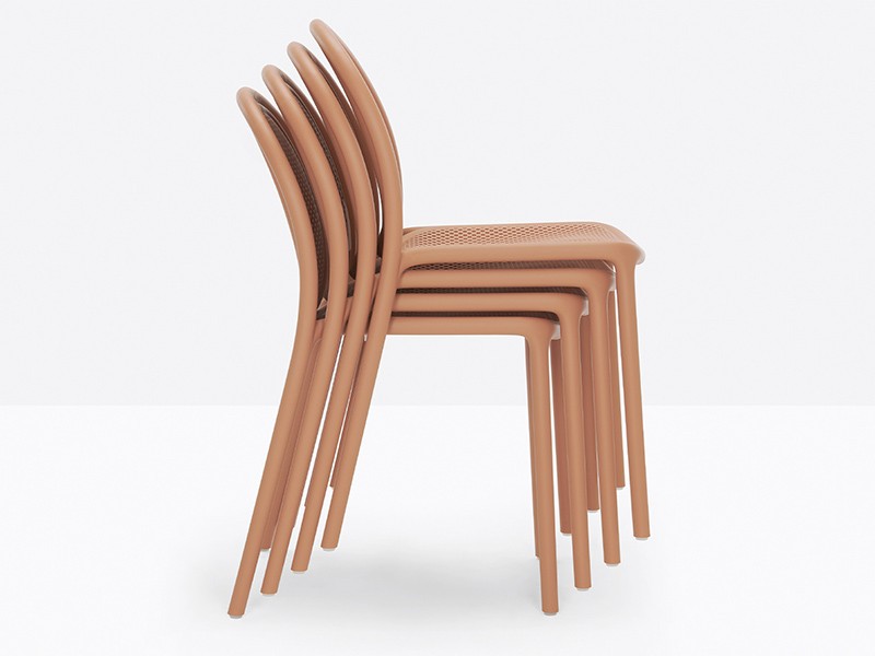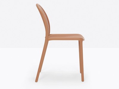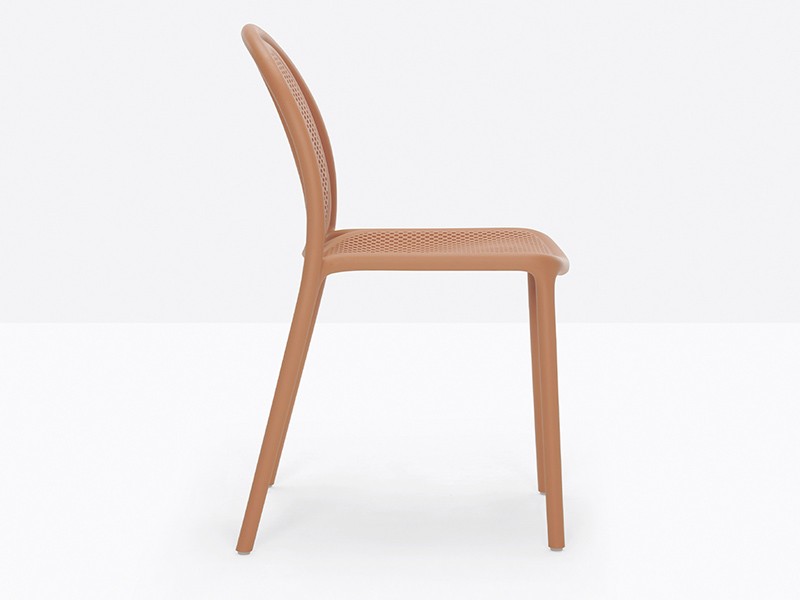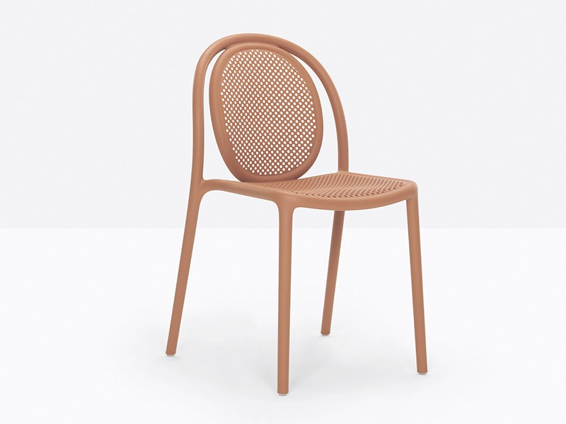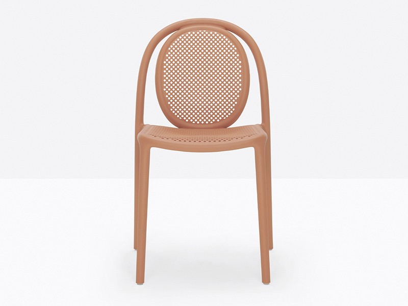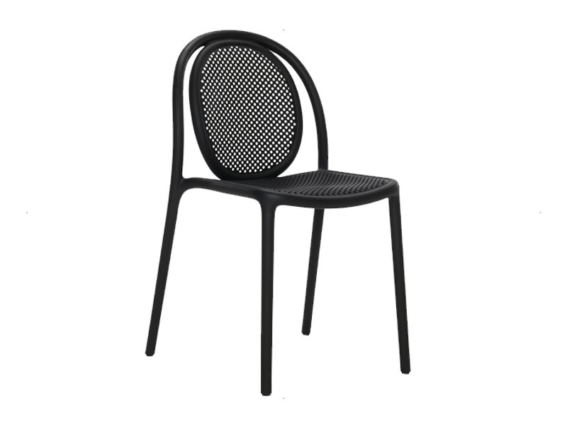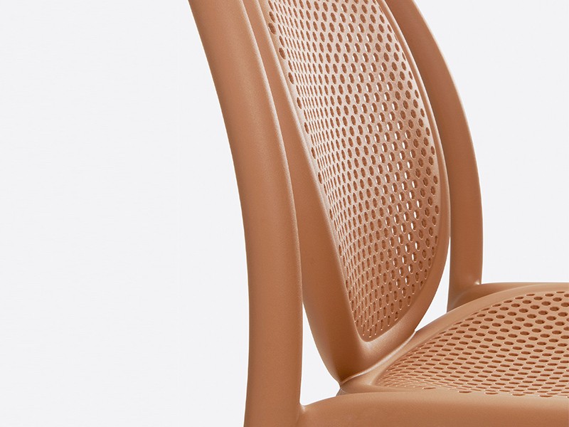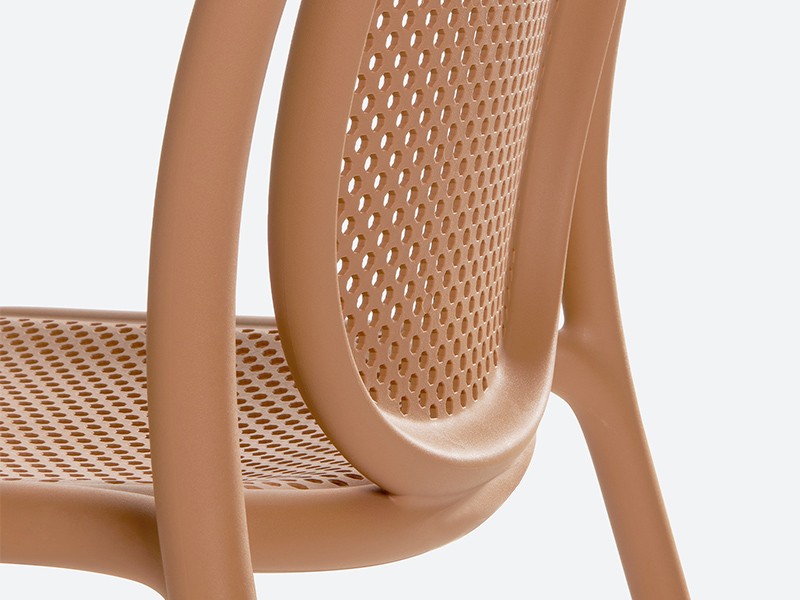 - Made from a monoblock of injection-moulded polypropylene, the transpiring seat and backrest contribute to the chair’s airy, lightweight appearance, as well as to its embracing comfort.
