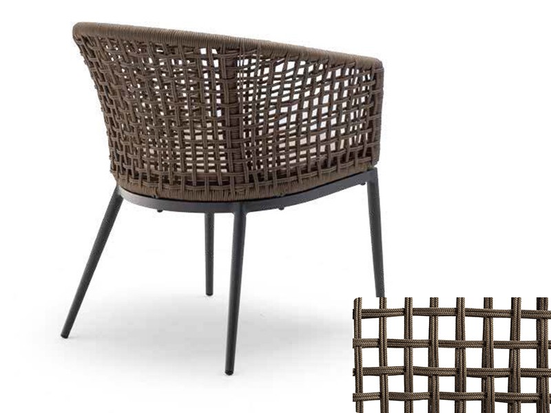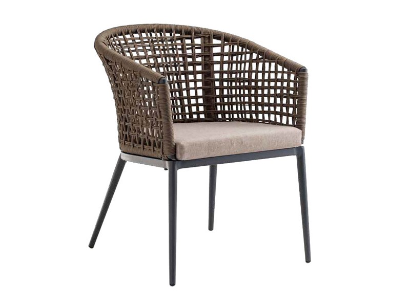 - Aluminium chair covered with polyester rope, in line with the latest trends.